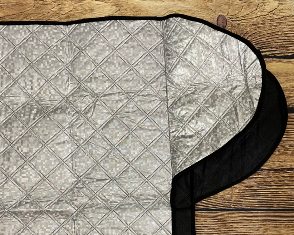 - Lớp ngoài cùng là lớp phản quang ánh sáng mặt trời. Lớp thứ hai là lớp bông mỏng để chống nắng, lớp thứ ba là lớp nỉ màu đen được dập 2 đường chỉ tinh tế, đan chéo nhau để đảm bảo không bung tróc và sử dụng lâu dài.