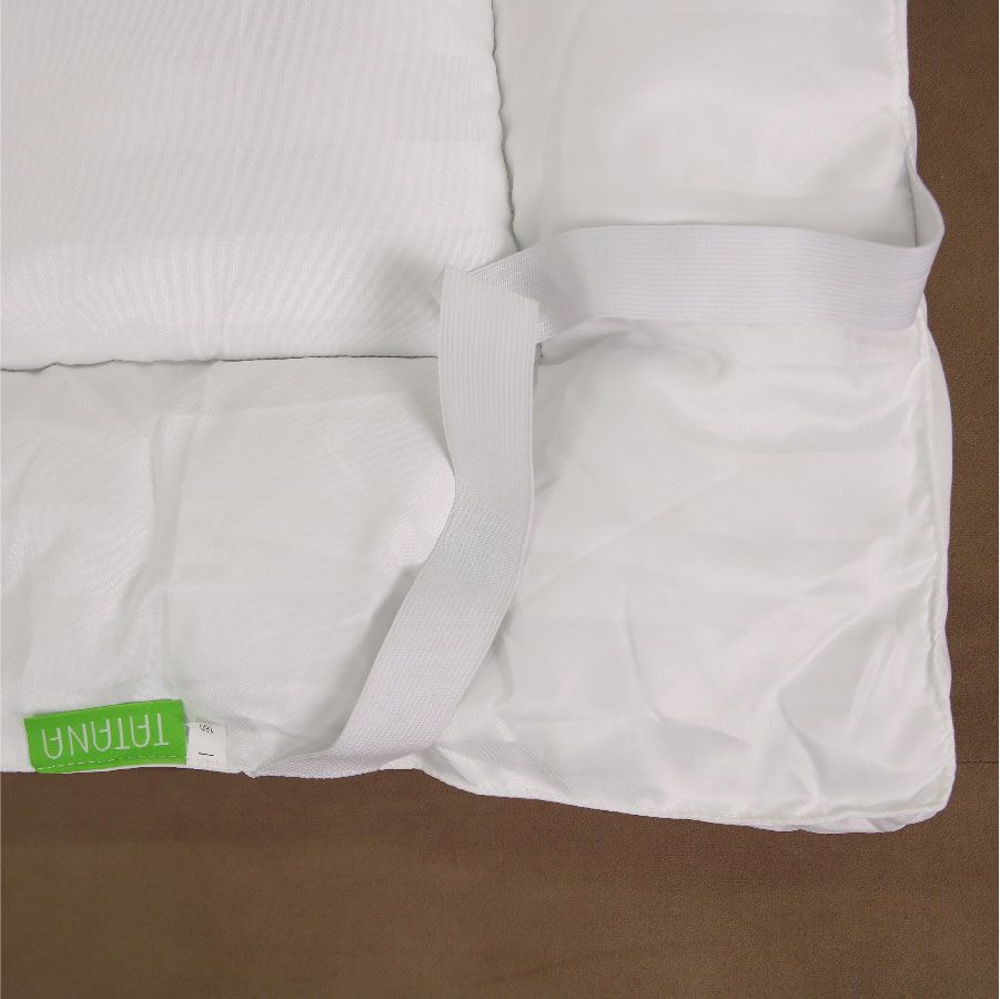 CẤU TẠO CỦA TOPPER TATANA - Vải Cotton: Topper Tatana được sản xuất theo quy chuẩn độ phồng 5cm, đây là dòng topper nệm cao cấp, hiện đại,phù hợp với nhu cầu sống hiện đại. Sản phẩm có cấu tạo gồm 2 thành phần chính: Bên trong là lớp ruột được làm từ sợi lông vũ nhân siêu nhỏ tạo êm ái khi "chạm" vào và trải qua quy trình xử lý kháng khuẩn, đảm bảo an toàn cho sức khỏe. Bên ngoài là lớp vải Cotton pha rất mềm và mịn với khả năng chống chui giúp các sợi lông nhỏ không bị bay ra ngoài trong quá trình sử dụng. Không lo bị nóng, bí hơi hay hầm nực, thay vào đó sẽ rất thông thoáng và mát. Đặc biệt, vì máy may chần hiện đại nên chia tấm Topper làm mềm nệm thành các các ô/múi có thể tích vuông vức, cân đối và đẹp mắt. Ngoài ra, vì Topper Nệm được chần kỹ càng nên hoàn toàn không lo bị nhồi hay dồn bông ruột bên trong suốt quá trình sử dụng, giúp sản phẩm không bị xẹp lún, xuống cấp tính năng theo thời gian. Topper có 4 dây thun ở các góc để khi trải lên nệm topper được cố định ở một vị trí nhất định, không bị xê dịch khi bạn xoay trở mình. ƯU - NHƯỢC ĐIỂM CỦA TOPPER TATANA Ưu điểm: Các sợi lông vũ nhân tạo được máy đánh tơi, thổi vào từng ô và may lại tỉ mỉ. Trong khi đó, gòn may theo lớp chần lên nên sẽ không được bồng bềnh và êm ái bằng lông vũ công nghiệp. Nhược điểm: Giá thành topper lông vũ nhân tạo hơi cao hơn so với các loại topper thông thường, nhưng bù lại là độ bền và tính năng vô cùng tuyệt vời. LỢI ÍCH KHI SỬ DỤNG TOPPER: