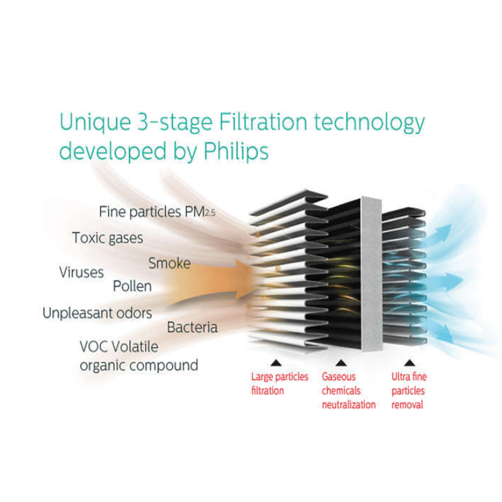 - oại bỏ 99,97% chất gây ô nhiễm trong không khí như vi rút, sol khí, khói và hơn thế nữa - Lọc không khí cho các phòng có diện tích lên đến 59 m²