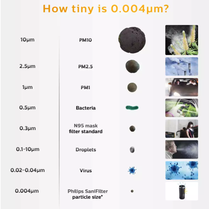 - Tấm lọc, màng lọc sử dụng công nghệ SaniFiler Plus đời mới nhất của Philips, lọc 3 giai đoạn mạnh mẽ độc đáo loại bỏ tới 125 chất gây ô nhiễm có hại và khí thải và các loại virut, thông qua các lớp HEPA và HESA. Được chứng nhận độc lập bởi Airmid Healthgroup, công nghệ SaniFilter Plus cũng loại bỏ tới 99% các hạt bụi siêu mịn và các chất gây dị ứng trong xe. Lọc hiệu quả các hạt nhỏ đến 0,004um, bao gồm các loại vi rút và vi khuẩn tức là nhỏ hơn 100 lần so với các loại virut thông thường .