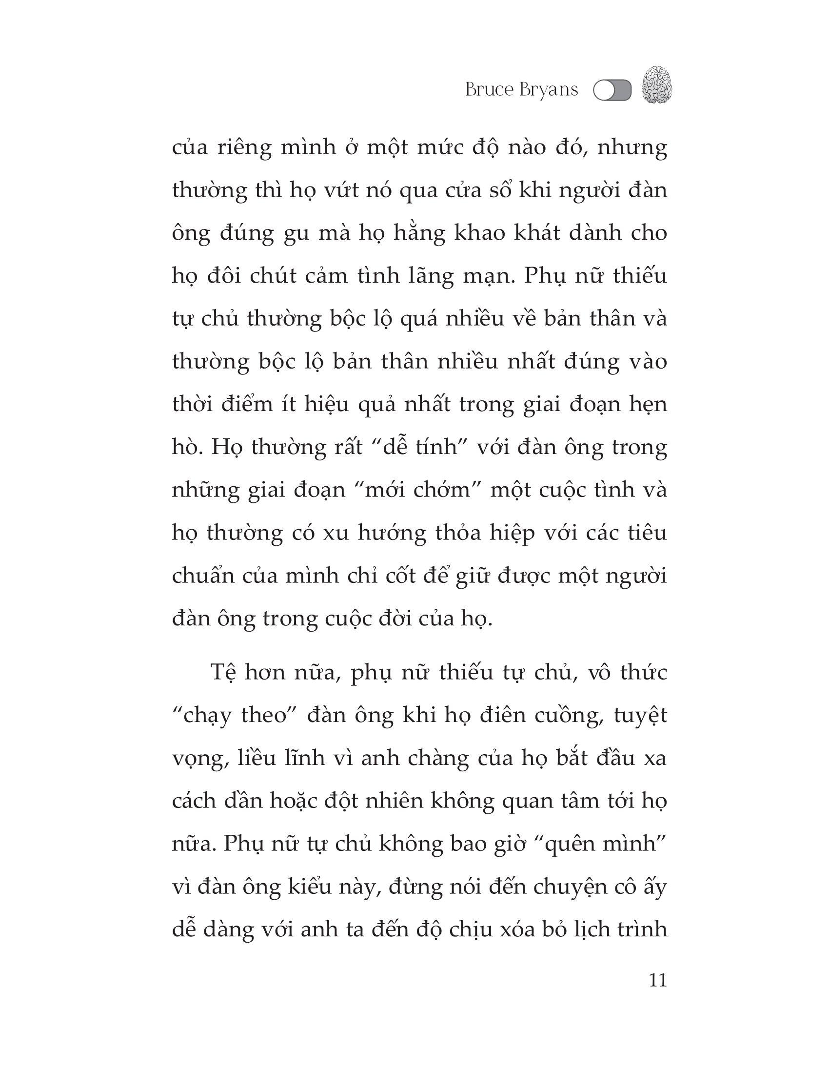 Tâm Lý Đàn Bà - Lý Trí Đàn Ông Đàn ông và phụ nữ vốn là hai chủ thể khác biệt nhau về sinh học, vai trò xã hội và cả trong tình yêu. Nhiều người hay cho rằng, chỉ có tâm lý phụ nữ là khó hiểu, phức tạp. Phụ nữ thường nói không thành có, thường sáng nắng chiều mưa. Trong thực tế, tâm lý đàn ông cũng rất khó nắm bắt, đôi khi họ cũng khá phức tạp và vô cùng khó đoán. Phụ nữ nếu có thể nắm bắt được tâm lý của đàn ông thì sẽ giúp họ dễ dàng hơn trong việc xử lý các tình huống, mâu thuẫn giữa đôi bên, khéo léo gìn giữ hạnh phúc và vun đắp cho mối tình của cả hai. Khi nói đến việc tìm kiếm một người bạn đời phù hợp cho một mối quan hệ nghiêm túc và cam kết, một trong những điều đàn ông mong muốn nhất ở phụ nữ là sự tự chủ, hay nói cách khác là sự đĩnh đạc của phụ nữ. Sự tự chủ ấy sẽ làm tăng giá trị bản thân của người phụ nữ lên gấp nhiều lần. Trong tình yêu, những người phụ nữ ấy luôn biết duy trì sự bí ẩn, sự quyến rũ nữ tính của m.ình để mời gọi đàn ông theo đuổi cô ấy say đắm. Người ta thường nói rằng: “Phụ nữ yêu bằng tai, đàn ông yêu bằng mắt.” Nếu bạn muốn thu hút và duy trì sự chú ý của một người đàn ông có phẩm chất cao - một người có hoãi bão, cam kết một mối quan hệ lâu dài, hay chỉ đơn giản là muốn biết rõ điều m.ình muốn về người ấy,… thì cuốn sách này là dành cho bạn. Tâm lý đàn bà – lý trí đàn ông là một cuốn sách về chủ đề hẹn hò sẽ tiết lộ các thói quen, tín ngưỡng, thái độ hẹn hò của những người phụ nữ “đắt giá”; những người phụ nữ này luôn luôn trung thành với các tiêu chuẩn hẹn hò và cố thủ các ranh giới cá nhân của riêng họ, bất chấp người đàn ông mà cô ấy đang hẹn hò đáng mơ ước, đáng khao khát, thân thế bất phàm ra sao. Vì thế nếu bạn sẵn sàng “giăng câu” anh chàng Mr Right (Người đàn ông chân chính) của m.ình ngay từ vài tuần hẹn hò đầu tiên, làm sao để anh ấy phải khao khát ở bên bạn, mong mỏi được đồng hành với bạn và nài nỉ sự cam kết của bạn, hãy đọc cuốn sách này. Cuốn sách gồm 4 chương với những nội dung chính thú vị như: Chương 1: Hẹn hò làm sao để được yêu, được tôn trọng Chương 2: Hẹn hò chiến lược để tìm được đúng người trong mộng Chương 3: Tín điều và tiêu chuẩn của người phụ nữ “đắt giá” Chương 4: Nắm giữ trái tim để người thương dốc cạn tâm tình