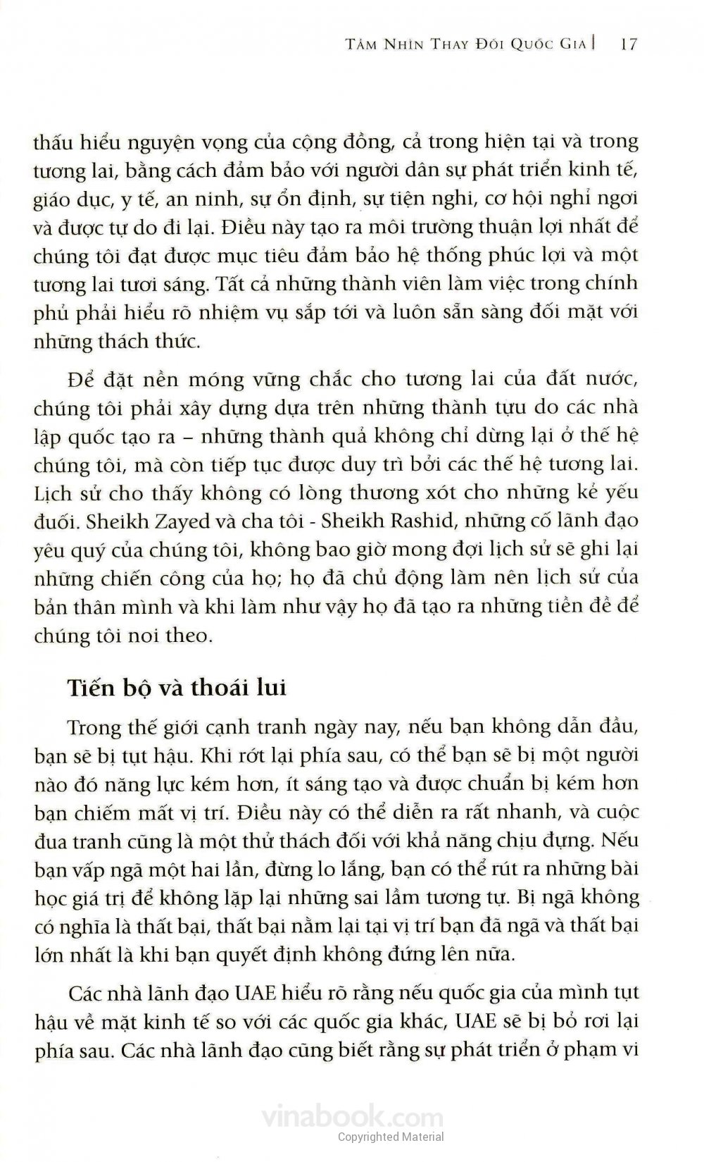 Cuốn sách Tầm Nhìn Thay Đổi Quốc Gia (được biên dịch từ My Vision) của tác giả, đồng thời cũng là Quốc vương Dubai - Mohammed bin Rashid Al Maktoum. Cuốn sách là một cái nhìn toàn diện về Dubai nói riêng và về Ả Rập nói chung, sẽ là một kinh nghiệm, một tham chiếu quý báu cho nhiều quốc gia, trong đó có Việt Nam.