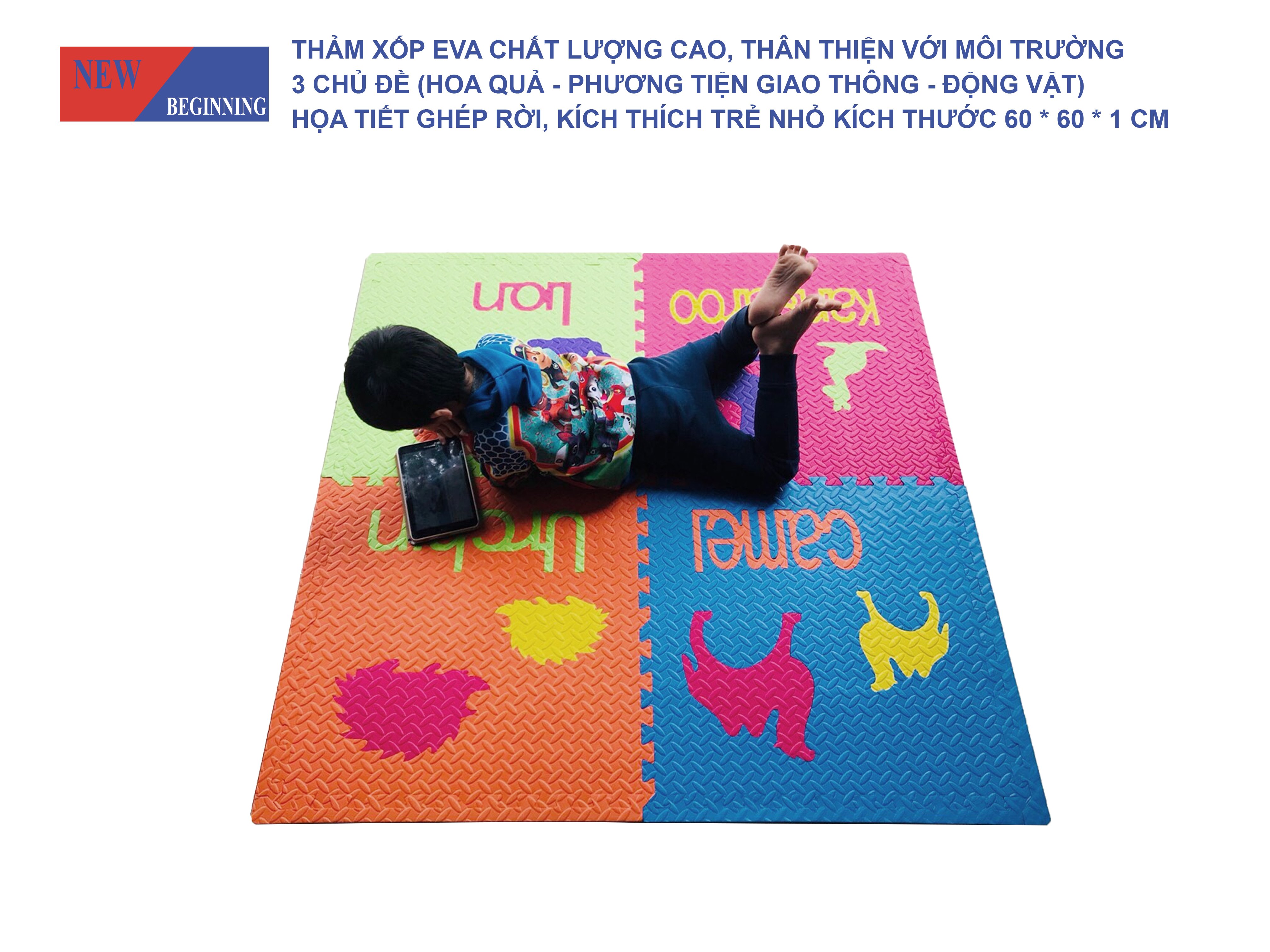 Đặc điểm nổi bật - Chất liệu cao cấp, mềm mại, an toàn - Thảm được làm hoàn toàn từ chất liệu xốp cao cấp, đảm bảo độ mềm mại khi bé chơi. - Bề
