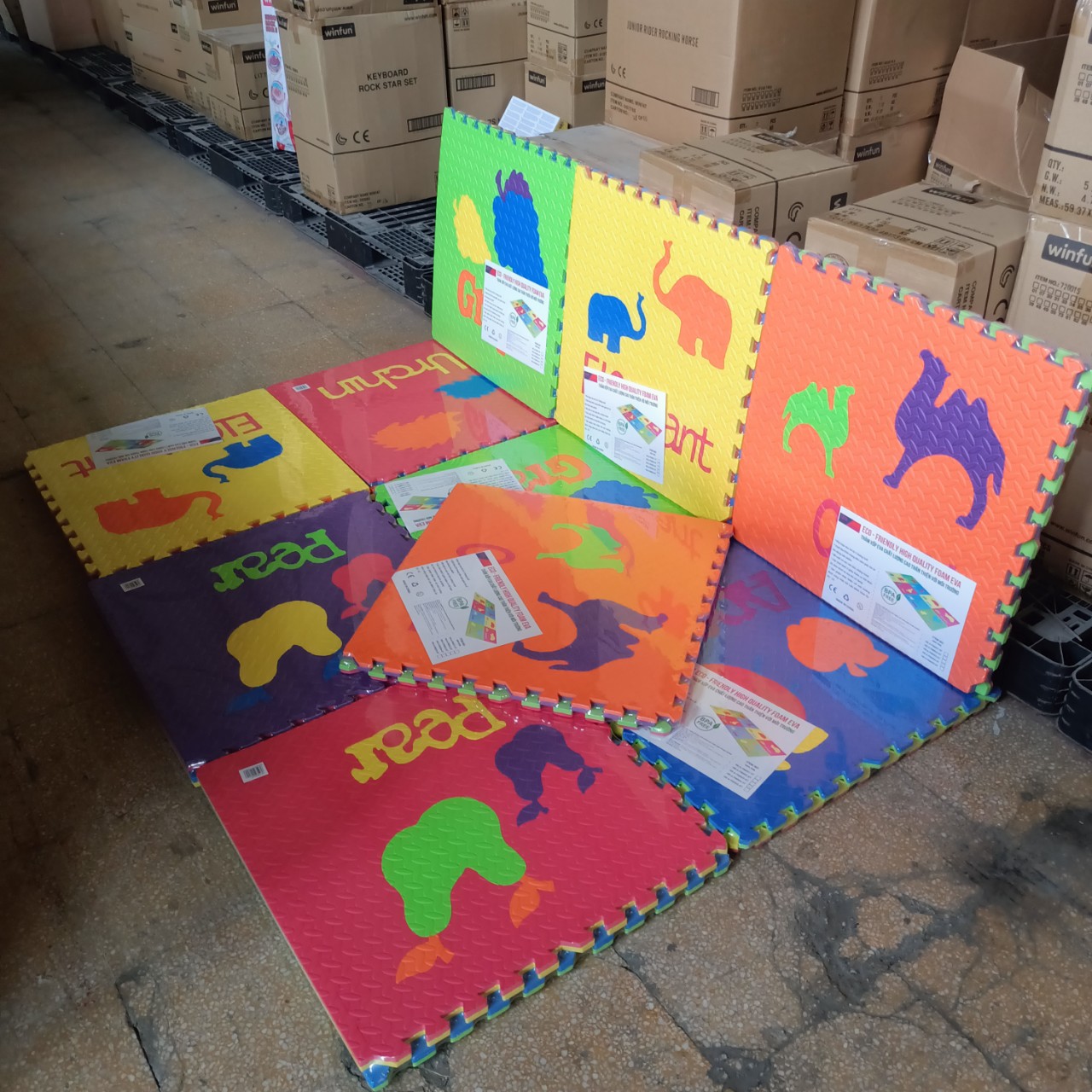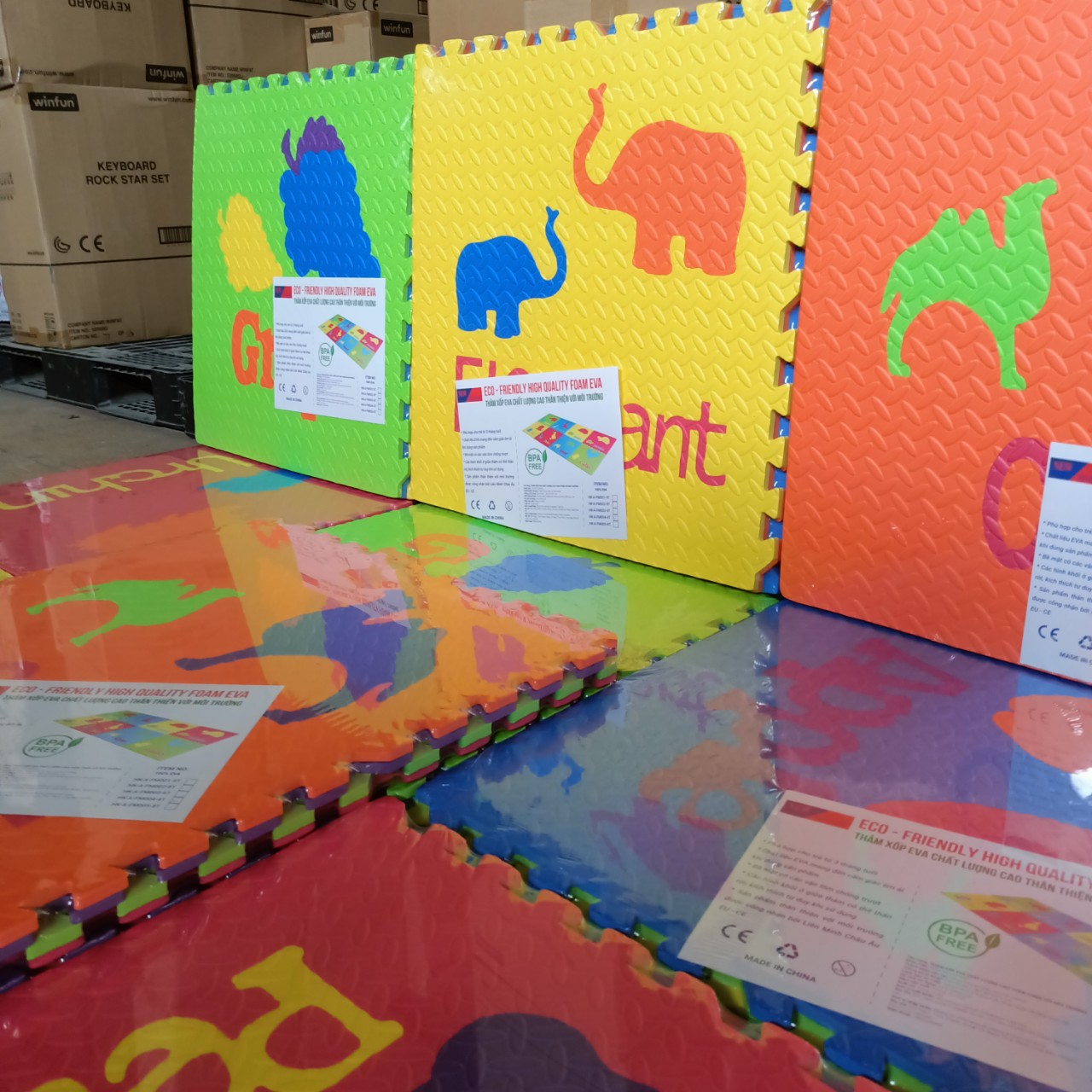 Đặc trưng: Đồ chơi và trò chơi. Mặt hàng này có nhiều màu sắc hấp dẫn khác nhau với các tấm thảm có thể lồng vào nhau. Thảm xốp xếp hình mini này có thể