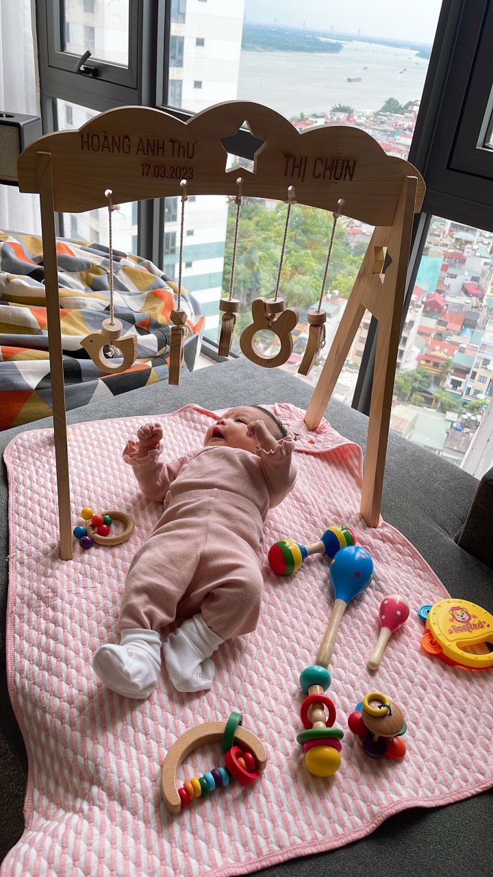 Các mẹ có thể dễ dàng treo thêm hoặc thay đồ chơi cho bé