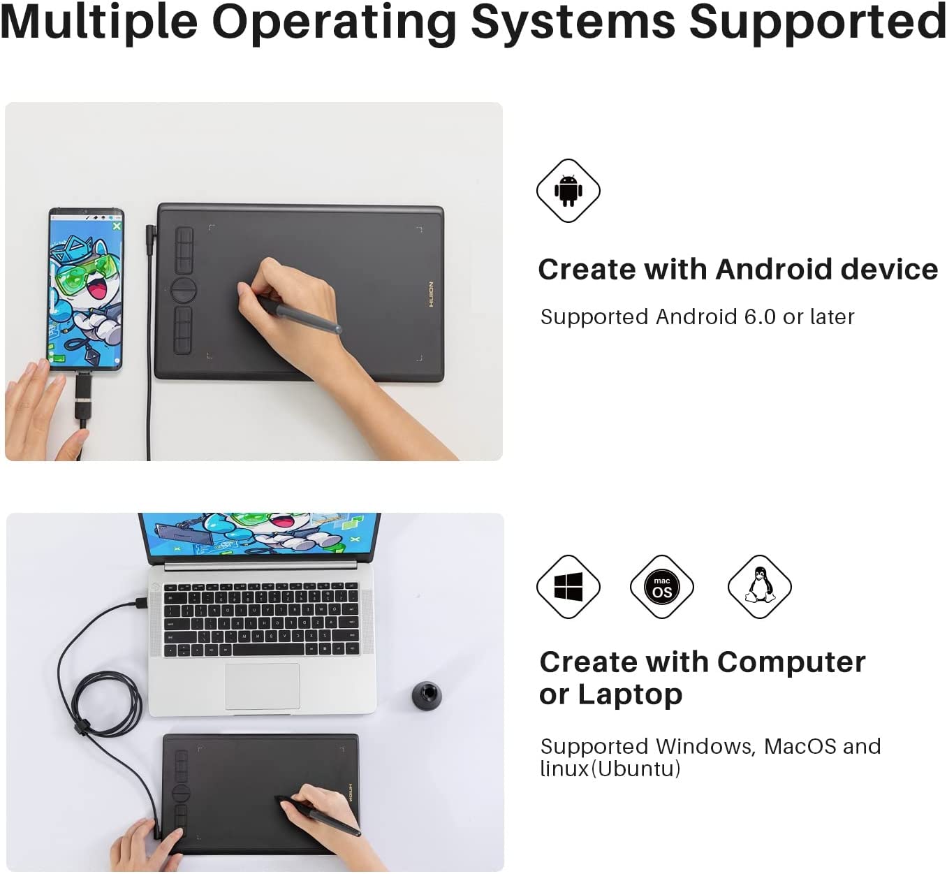 Bảng Vẽ Thiết Kế Đồ Họa Chuyên Nghiệp Huion H640P Hỗ Trợ Đa Nền Tảng PC,Laptop,Smartphone chạy cả trên Windows/Mac lẫn Điện Thoại Android. HUION Inspiroy H640P Drawing Tablets Graphics Pen Tablet with 8192 Pressure