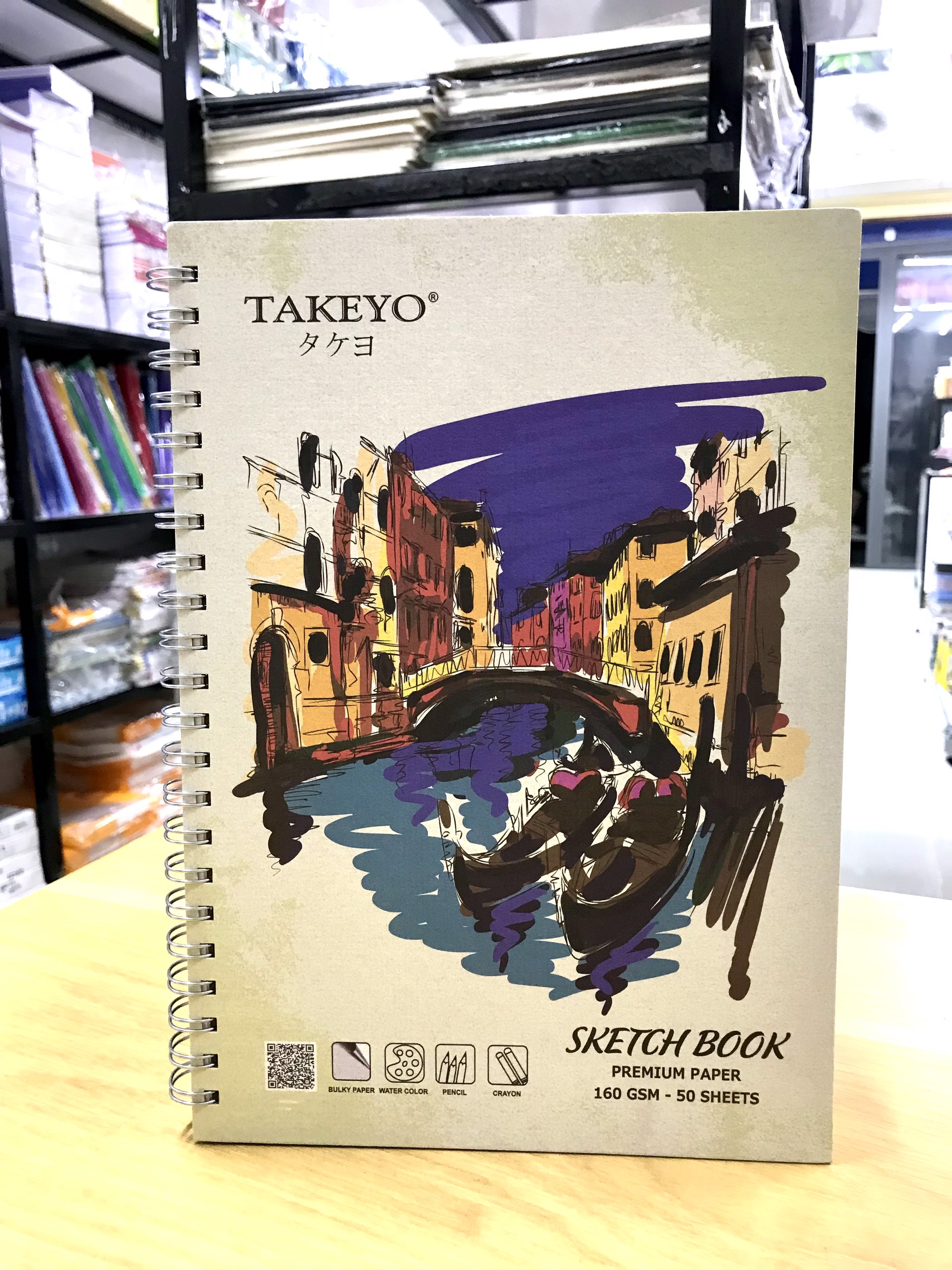 Tập Vẽ Lò Xo Takeyo A4 50 Tờ 8524 được thiết kế với kiểu dáng hiện đại, bìa trang trí đẹp mắt, màu sắc hài hòa. Đây là dạng sổ vẽ khổ dọc cỡ A4, đóng gáy lò xo tiện dụng.
