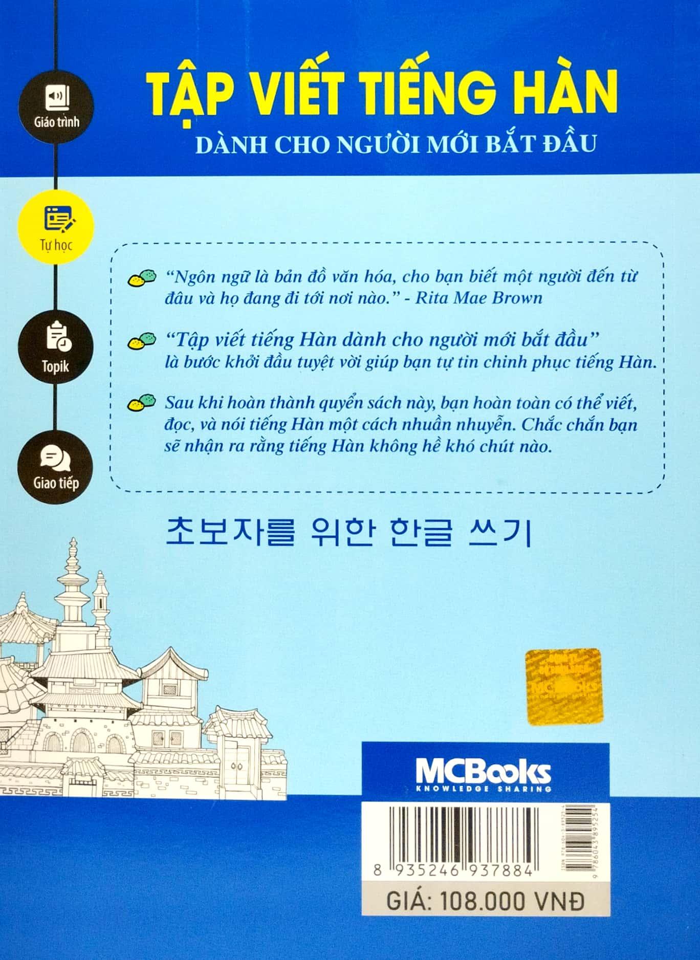 Cuốn sách “Tập viết tiếng Hàn dành cho người mới bắt đầu” là bước khởi đầu cho các bạn yêu thích đất nước Hàn Quốc, mong muốn học tiếng Hàn để kết nối, giao tiếp với người Hàn Quốc, và mong muốn tìm hiểu nền văn hóa đặc biệt của họ.