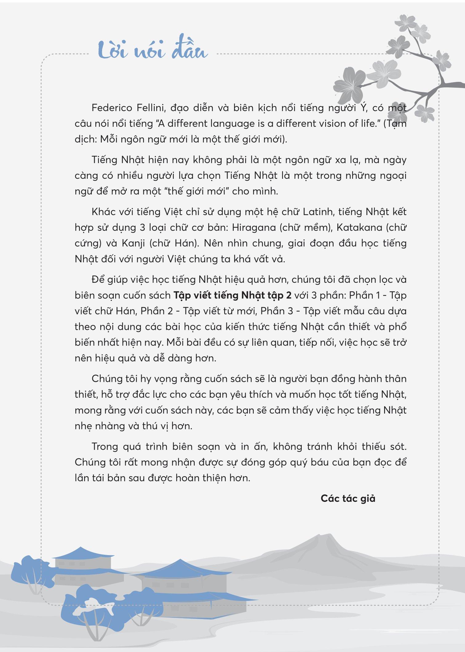 Cuối cùng, hy vọng rằng cuốn sách này sẽ là người bạn đồng hành thân thiết, hỗ trợ đắc lực cho các bạn yêu thích và muốn học tốt tiếng Nhật, giúp cho con đường theo đuổi đam mê của mọi người nhẹ nhàng và trở nên thú vị hơn. Chúc các bạn học tốt