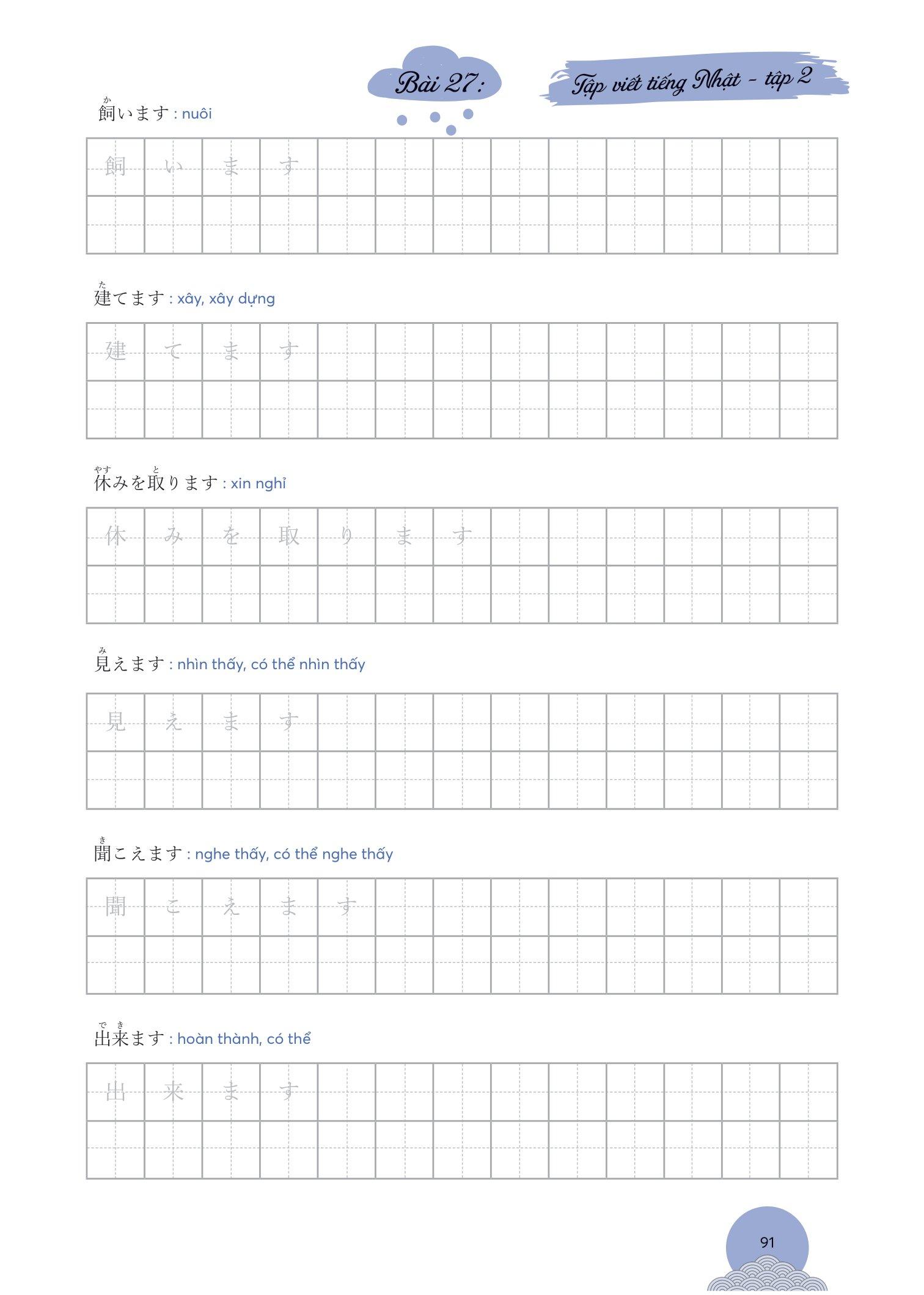Để giúp người học tiếng Nhật nhanh, hiệu quả hơn chúng tôi đã chọn lọc và biên soạn cuốn sách Tập viết tiếng nhật tập 2 ( trình độ sơ cấp N4)