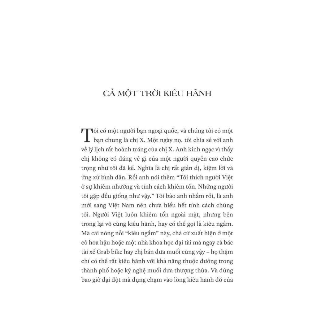 Tản văn: Cocktail thị thành (2011), Adam & Eva (2013), Gã Tây kia sao lấy được vợ Việt (2015), Tôi đã ăn cả cánh đồng hoa (2019), Nửa vòng trái đất uống một ly trà (2019), Chuyện nhỏ đàn bà (2022)