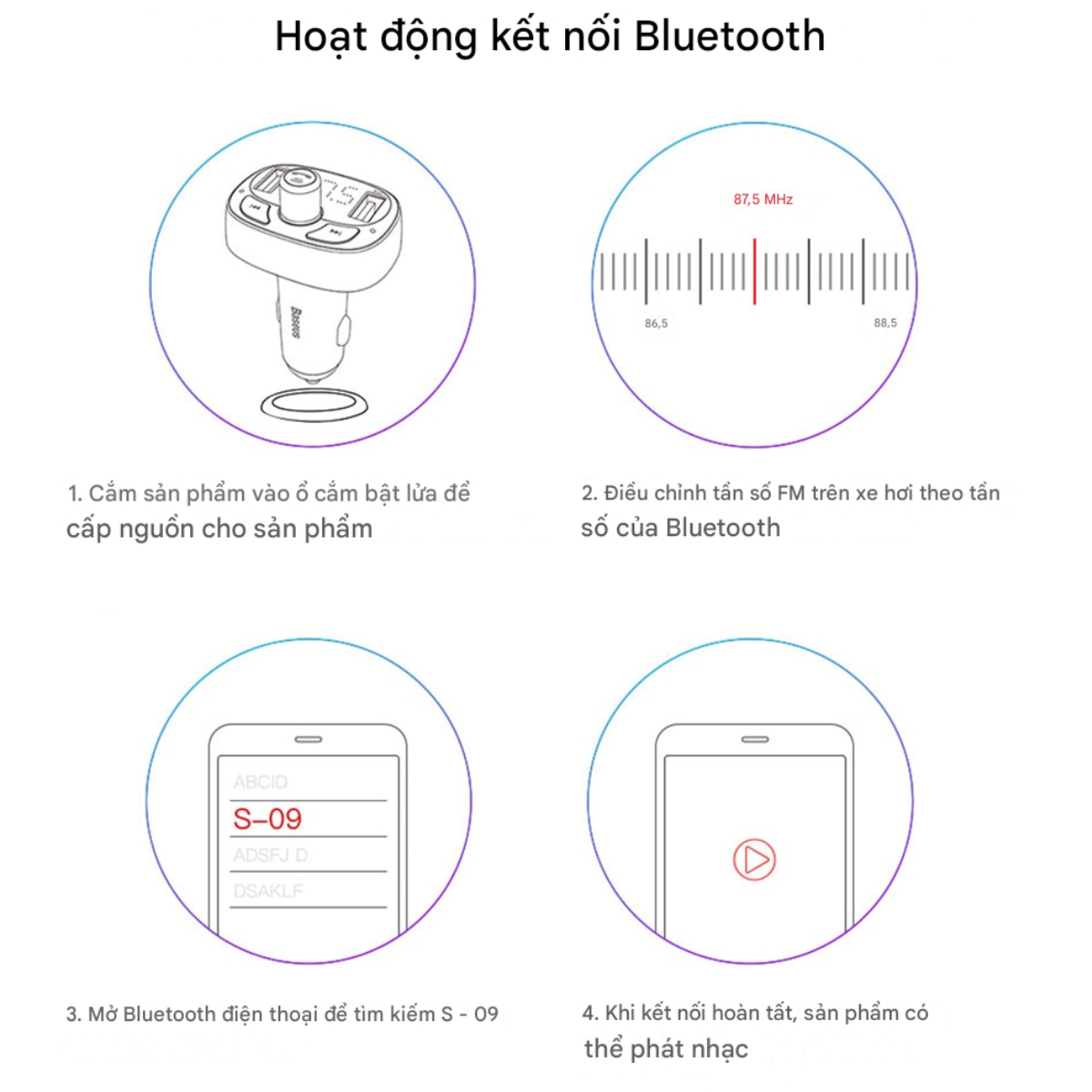 Z9CAR | Hướng dẫn sử dụng tẩu sạc Baseus T-Typed Wireless Mp3