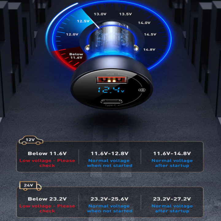 Thông số kỹ thuật Thương hiệu: Baseus Chất liệu: Hợp kim nhôm. + PC Đầu vào: DC 12V - 24V Bản 2U + 2C: USB output: 5V/3A; 9V/2A; 10V/2A; 12V/2.5A 30W Type C output: 5V/3A;
