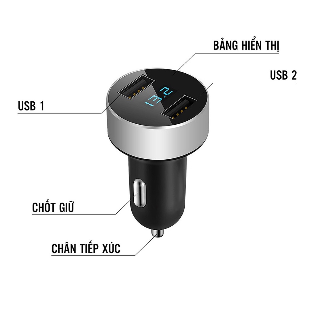 ✨Tẩu Sạc Xe Ô Tô Có Màn Hình Led Hiển Thị | Tẩu Sạc 2 Cổng USB Cho Phép Sạc Cùng Lúc Nhiều Thiết Bị, Có Màn Hình Led Hiển Thị