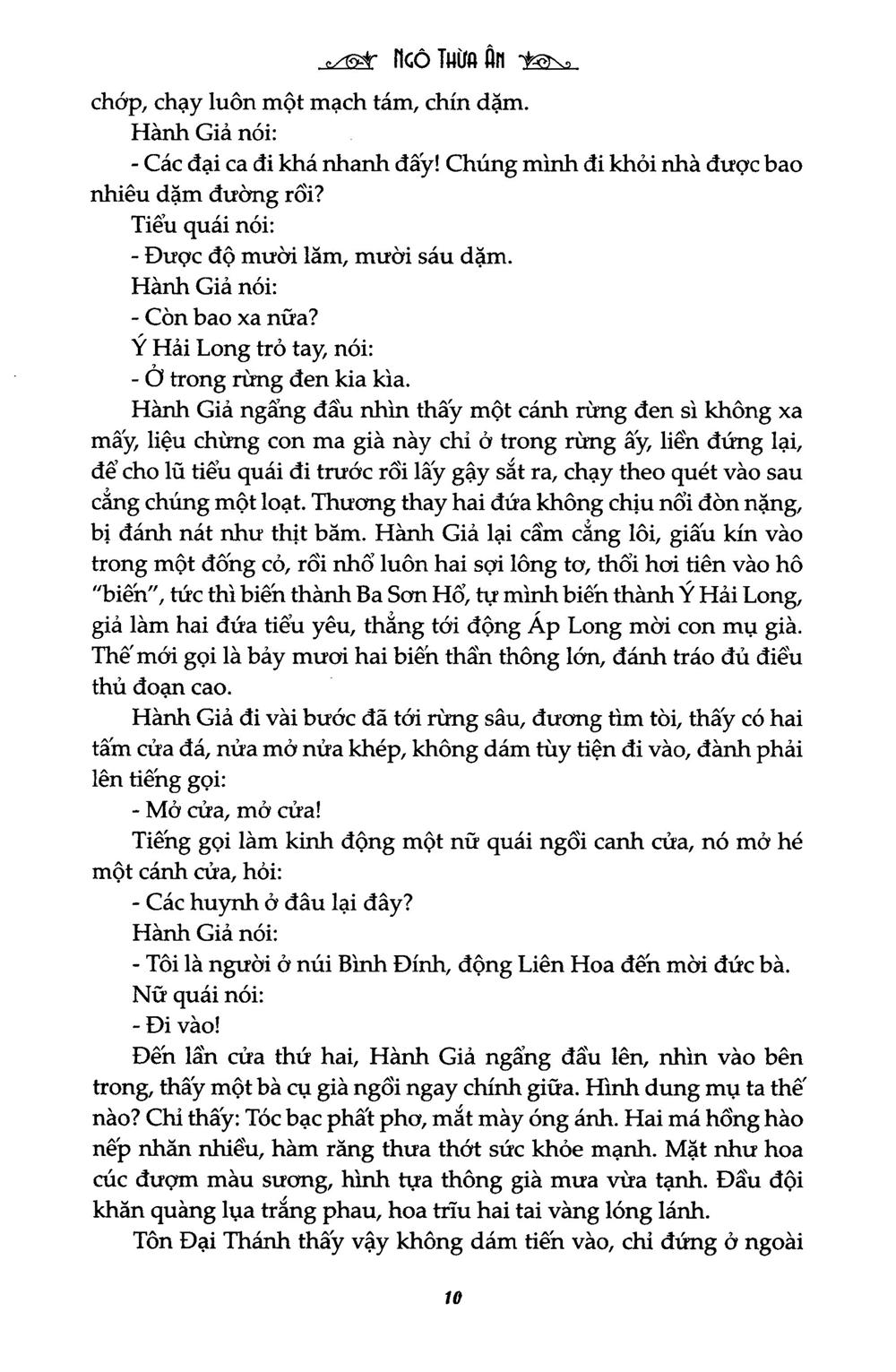 TÂY DU KÝ mở ra thế giới tưởng tượng phong phú không gì sánh được, có đầy đủ tình tiết truyện đưa người ta vào cảnh thắng thú vị: Đời sống vui vẻ, tự do tự tại của bầy khỉ ở Hoa Quả Sơn, việc đại náo thiên cung, địa phủ và lang cung, bảy mươi hai phép biến hóa, tám mươi mốt nạn trên đường; cho đến chỗ chiến trường cát bay đá lở, sự thần quái đi mây về gió, cuộc chiến đấu thần diệu kỳ dị Tất cả những cái ấy đã đưa người ta tiến vào một thế giới ảo tưởng thần diệu.