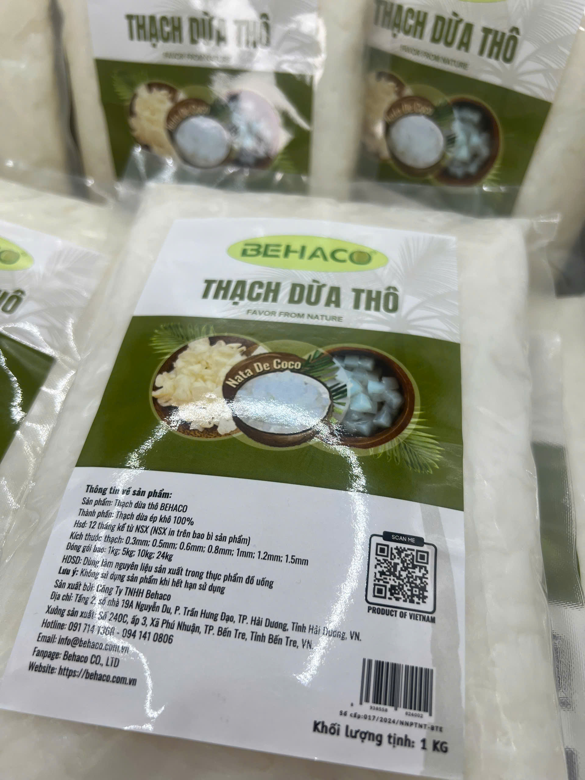THẠCH DỪA ÉP KHÔ BEHACO - 5 LY Thạch dừa thô là lớp Hemicellulose, sản phẩm sinh khối đươc tạo thành bởi sự lên men của vi khuẩn Acetobacter xylinum trong môi trường nước dừa