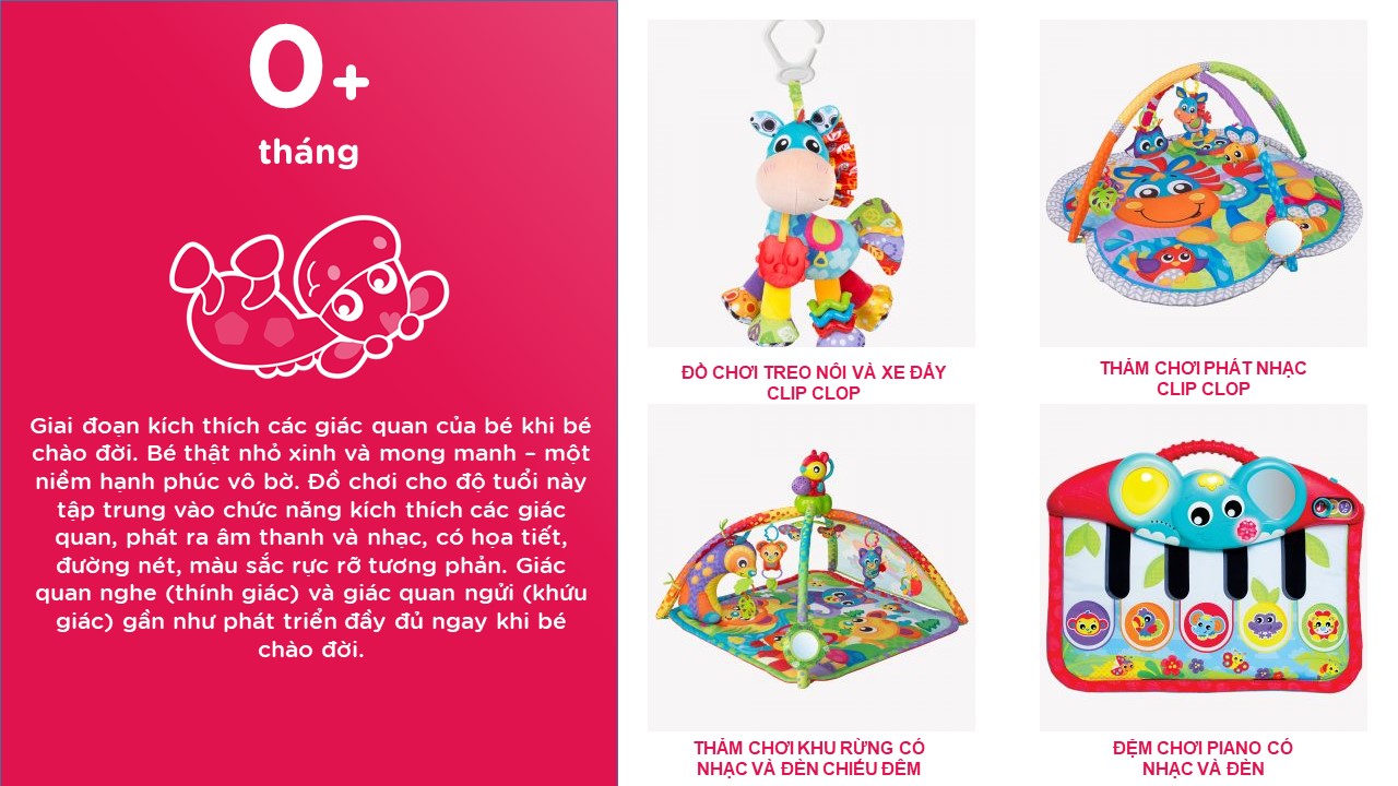• Đây là một tấm thảm tuyệt vời – kích thích phát triển 4 giác quan: thị giác, thính giác, xúc giác và khả năng tập trung của trẻ ngay từ khi mới sinh •