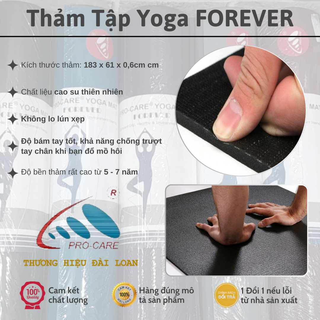✨Thảm Yoga Chống Trượt Cao Su Thiên Nhiên PRO-CARE FOREVER - Thảm Tập Siêu Bám, Siêu Bền Chính Hãng