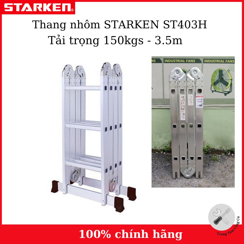 Thang nhôm 4 đoạn STARKEN ST403H được làm từ hợp kim nhôm rất chắc chắn, trọng tải thang lên tới 150kgs.Sản phẩm đạt tiêu chuẩn EN131 về độ an toàn.