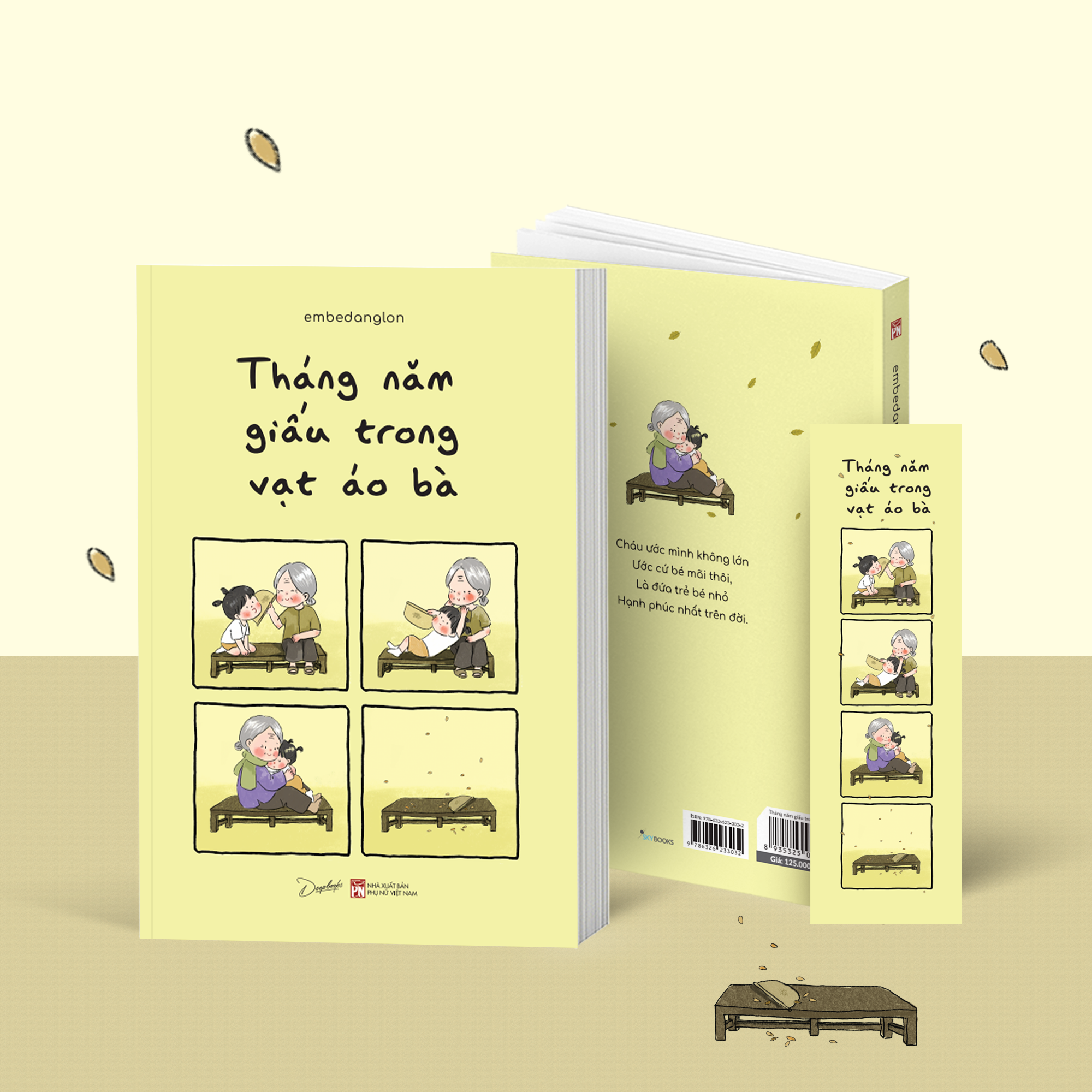 “Tháng năm giấu trong vạt áo bà” là cuốn sách tranh khẽ mở ra cánh cửa trở về tuổi thơ - nơi ta từng ước mình mãi không lớn, để được sồng hoài trong vòng tay chở che của gia đình. Trong tác phẩm này, tác giả embedanglon không chỉ gửi gắm những dòng chữ mộc mạc mà còn tự tay vẽ nên những bức minh họa dung dị và thân thương. Mỗi bức vẽ như một mảnh ghép dịu dàng về hình bóng những người đã che chở và nuôi dưỡng ta trong cả thuở ấu thơ: là làn khói bếp bảng lảng, mùi nắng đồng thơm, tiếng ru à ơi ngân trong vạt áo bà. Đâu đó là chiếc kẹo ngọt, con tôm bóc sẵn ông dành phần riêng cho đứa cháu nhỏ; là bữa cơm nhà ngọt lành mẹ nấu, hay cái mùng, chiếc quạt bố lặng lẽ sắp sẵn. Tất cả kết lại thành dòng chảy yêu thương của gia đình, âm thầm, giản dị nhưng đủ để nâng đỡ ta vững vàng suốt một đời.