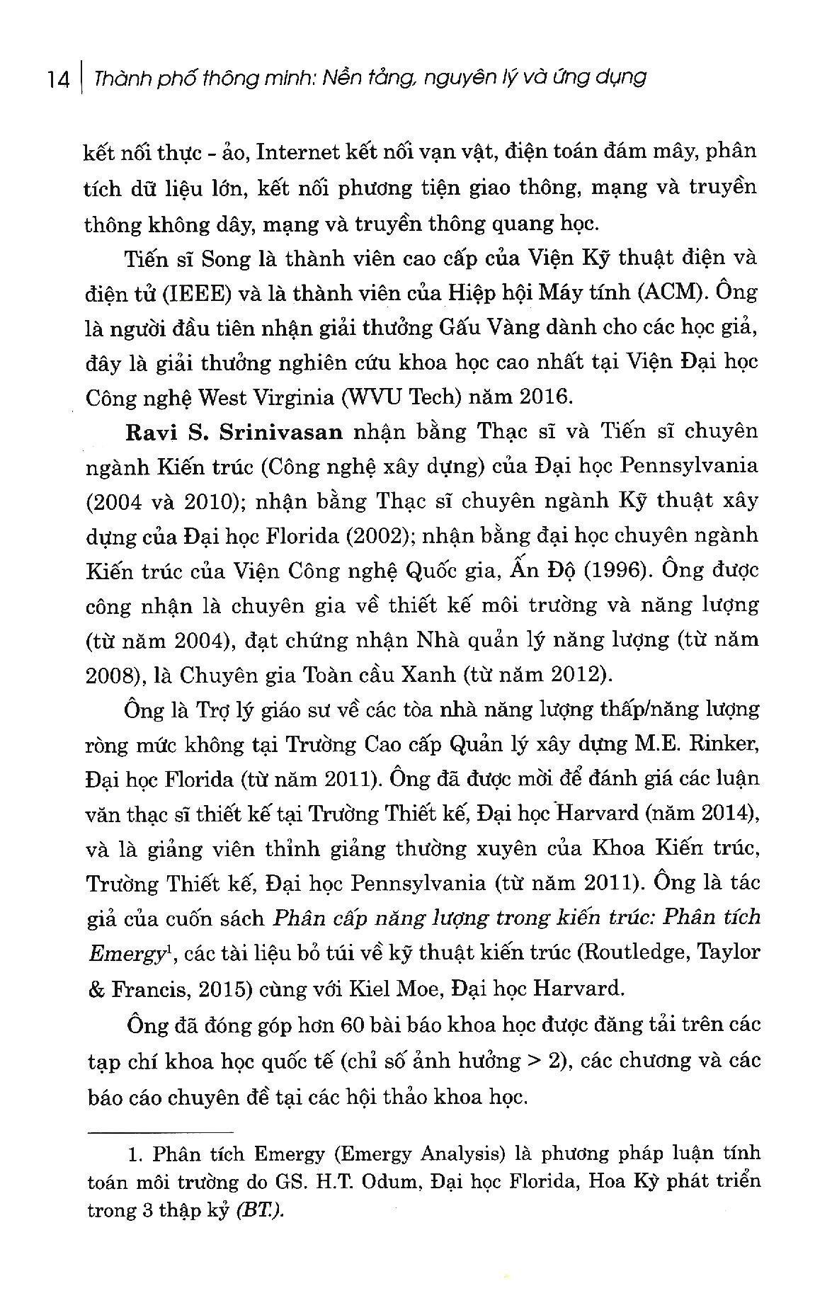 Hiện nay ở Việt Nam chưa có một tài liệu nào đề cập đến vấn đề này một cách toàn diện, cụ thể và hoàn chỉnh. Trước nhu cầu cấp thiết của việc xây dựng các đô thị thông minh, đồng thời với mục đích mang đến cho các nhà lãnh đạo cấp trung ương, địa phương, các nhà hoạch định chính sách, nhà khoa học, các chuyên gia, kiến trúc sư và độc giả có nhu cầu tìm hiểu về xây dựng, phát triển thành phố thông minh và các ngành công nghiệp thông minh liên quan, Nhà xuất bản Chính trị quốc gia Sự thật xuất bản lần thứ hai cuốn sách Thành phố thông minh: Nền tảng, nguyên lý và ứng dụng (Smart Cities: Foundations, Principles, and Applications) do Houbing Song, Ravi S. Srinivasan, Tamim I.Sookoor, Sabina Jeschke biên soạn, Nhà xuất bản Wiley ấn hành năm 2017.