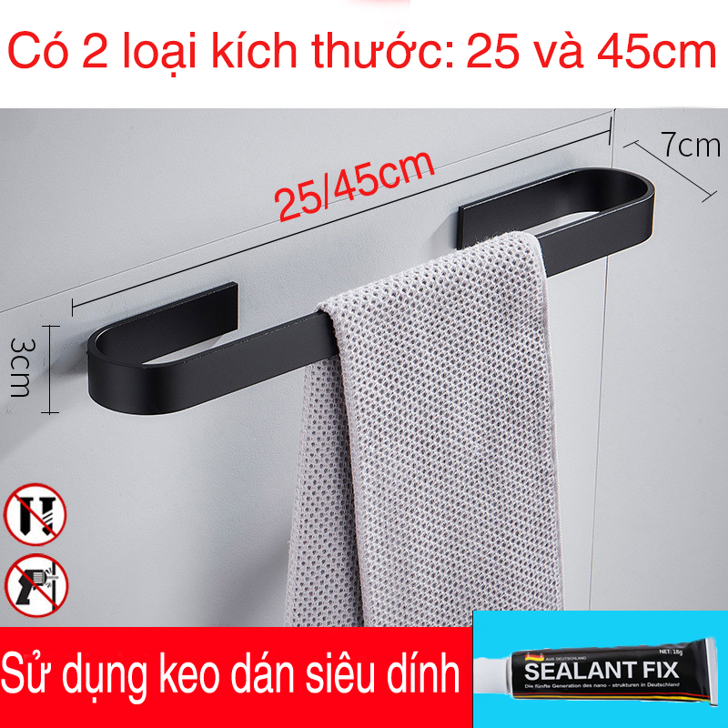 Thanh treo khăn tắm HOBBY KN1 nhôm sơn tĩnh điện dán gạch men - có 2 kích thước- 2 màu - kèm keo dán Sealant Fix Video thực tế Thông tin kỹ thuật