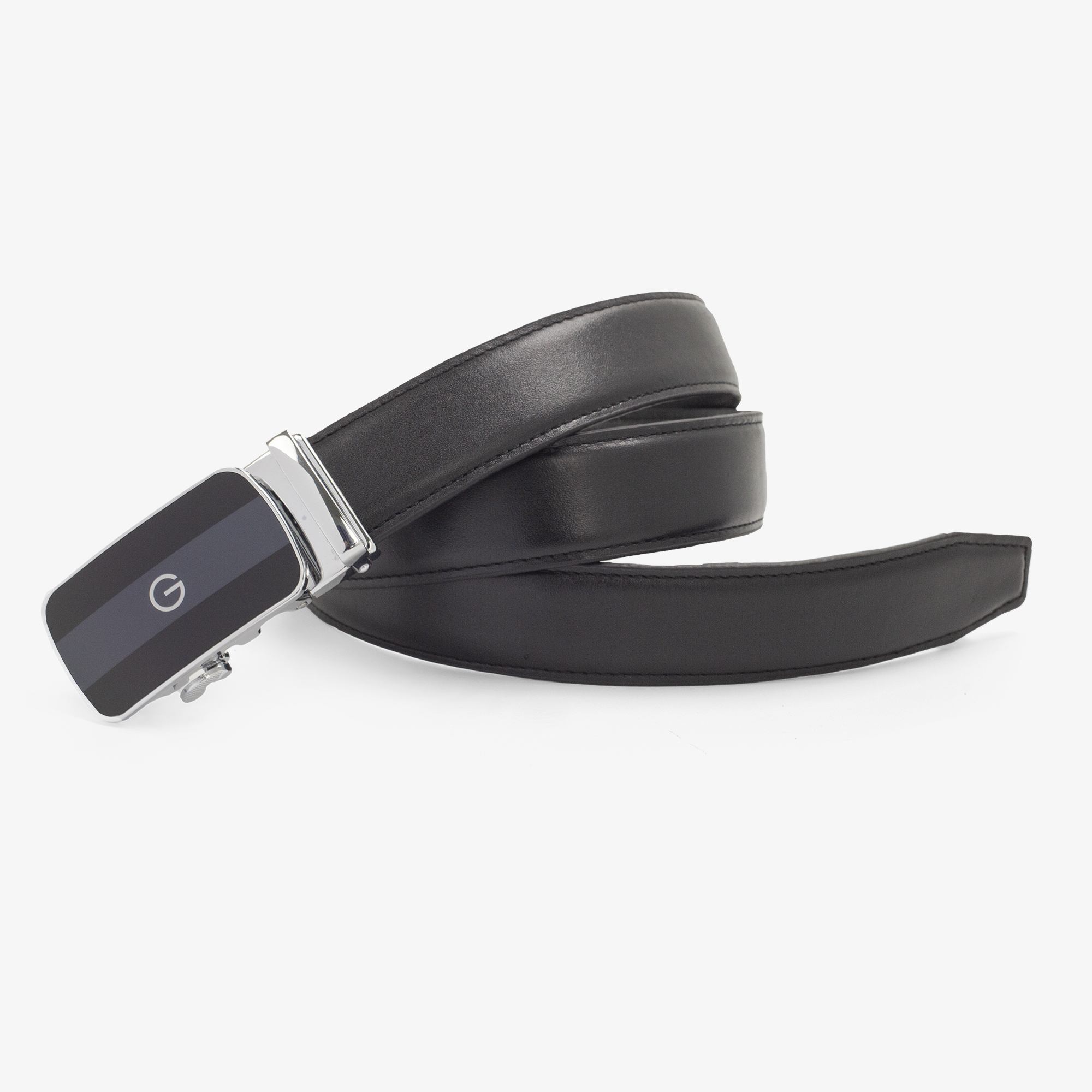 Thắt lưng nam da Saffiano 3 lớp màu đen-khóa tự động nhiều mặt lựa chọn