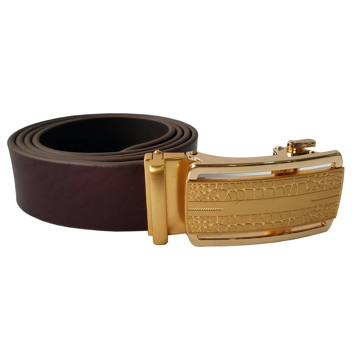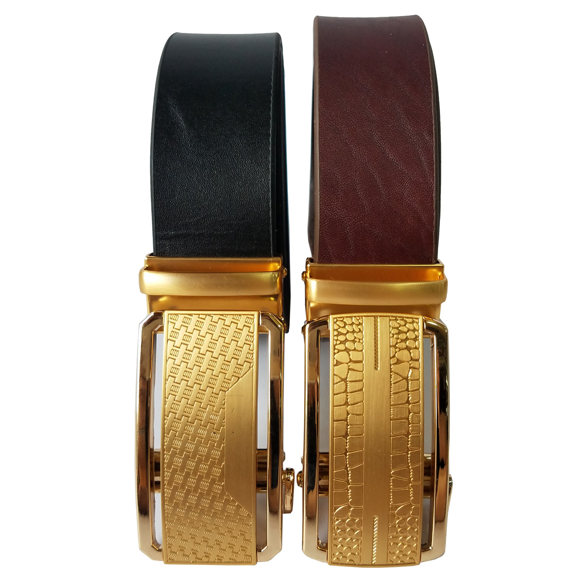 Thắt lưng nam da thật mặt khóa tự động bằng thép sáng bóng không gỉ