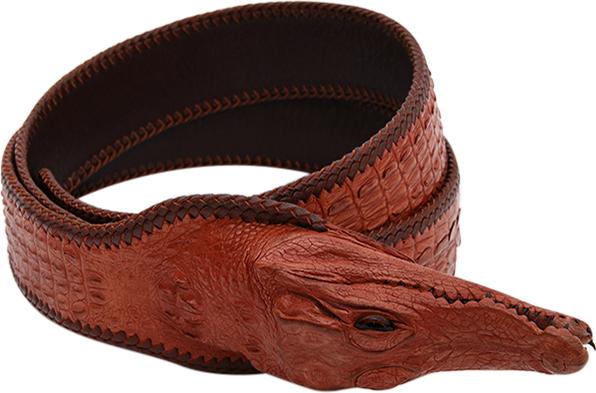 ✨Thắt Lưng Nam Da Cá Sấu Nguyên Con Lớn Đầu Cá Sấu Huy Hoàng HT4253 - Nâu Đỏ