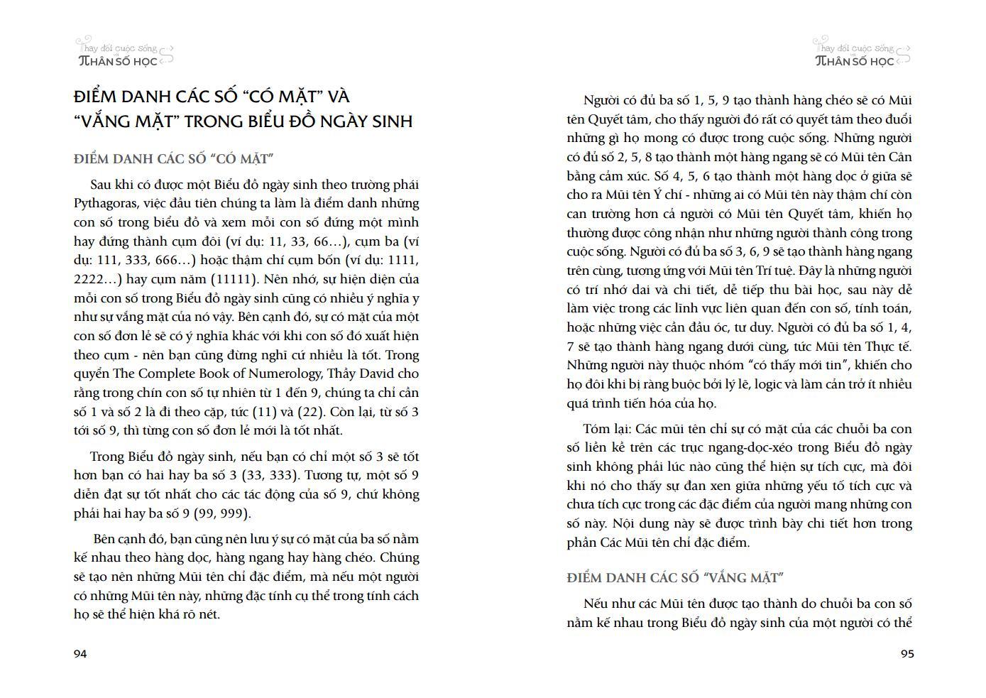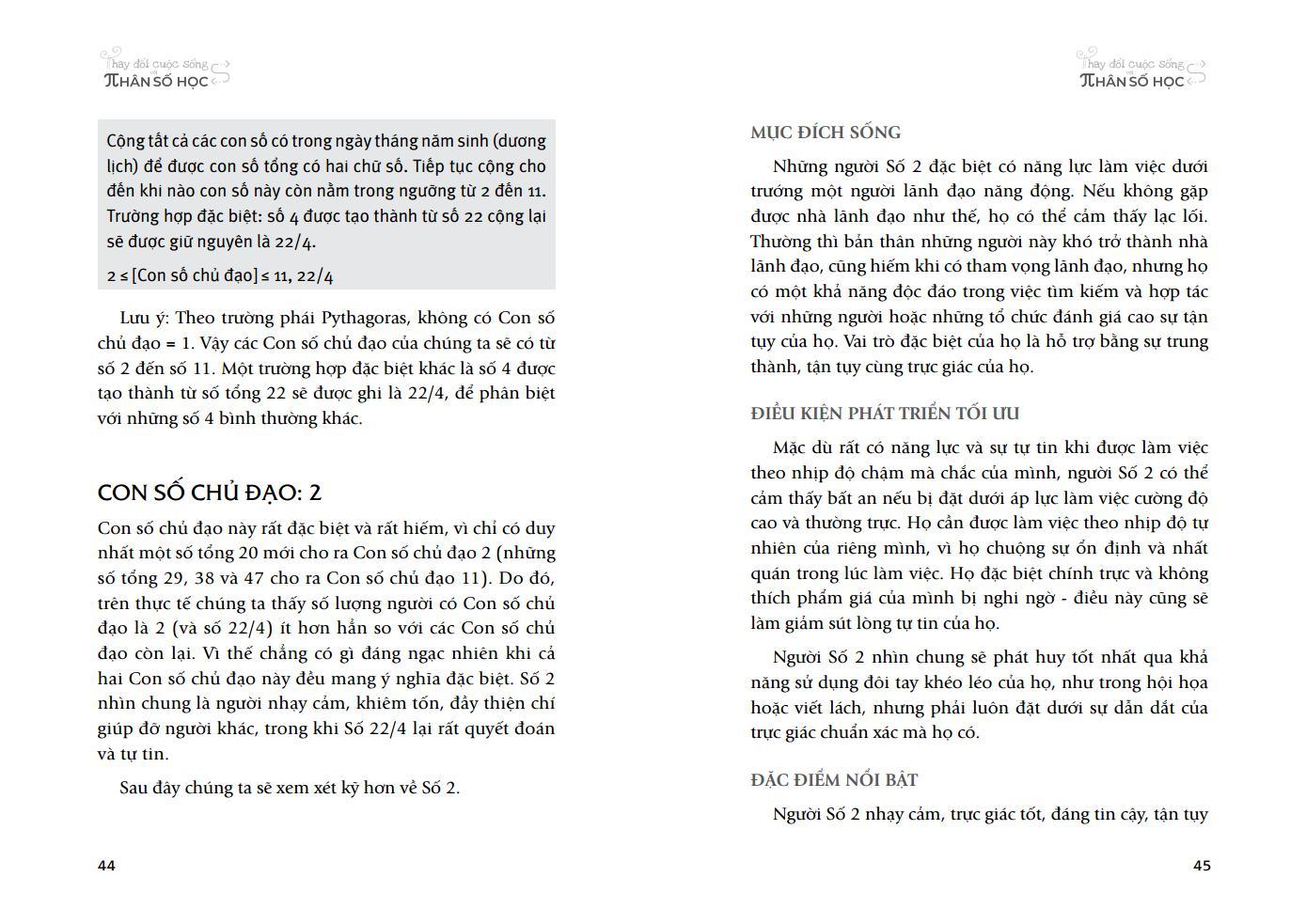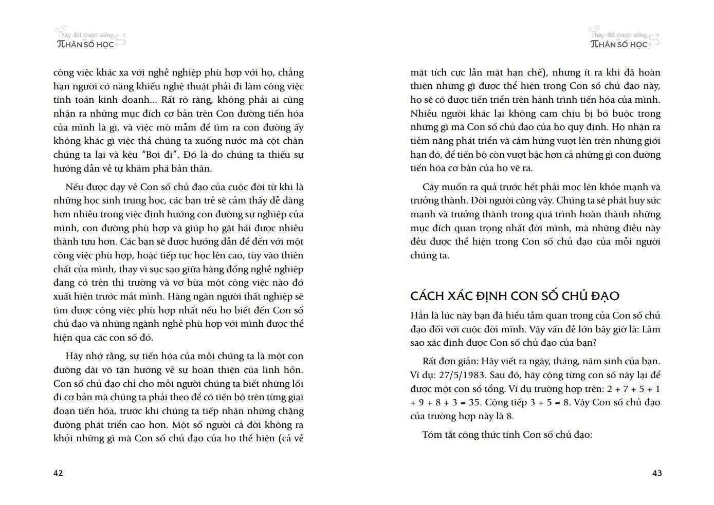 Cuốn sách “Thay đổi cuộc sống với Nhân số học”mang lại đầy đủ những kiến thức quan trọng nhất mà người hứng thú với Nhân số học cần tìm hiểu. Sách bao gồm các kiến thức về ba thể trong một con người, con số chủ đạo, biểu đồ ngày sinh, các mũi tên chỉ đặc điểm, con số ngày sinh, chu kỳ 9 năm, ba giai đoạn và bốn đỉnh cao của đời người cùng ý nghĩa, sức mạnh của cái tên của mỗi người. Các kiến thức này được diễn giải, phân tích và đi kèm các ví dụ cụ thể.