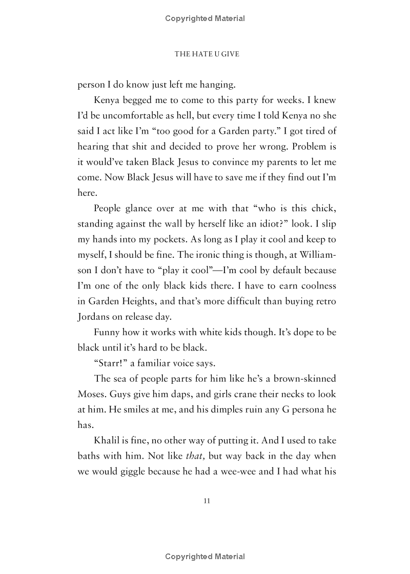 Soon afterward, his death is a national headline. Some are calling him a thug, maybe even a drug dealer and a gangbanger. Protesters are taking to the streets in Khalil’s name. Some cops and the local drug lord try to intimidate Starr and her family. What everyone wants to know is: what really went down that night? And the only person alive who can answer that is Starr.