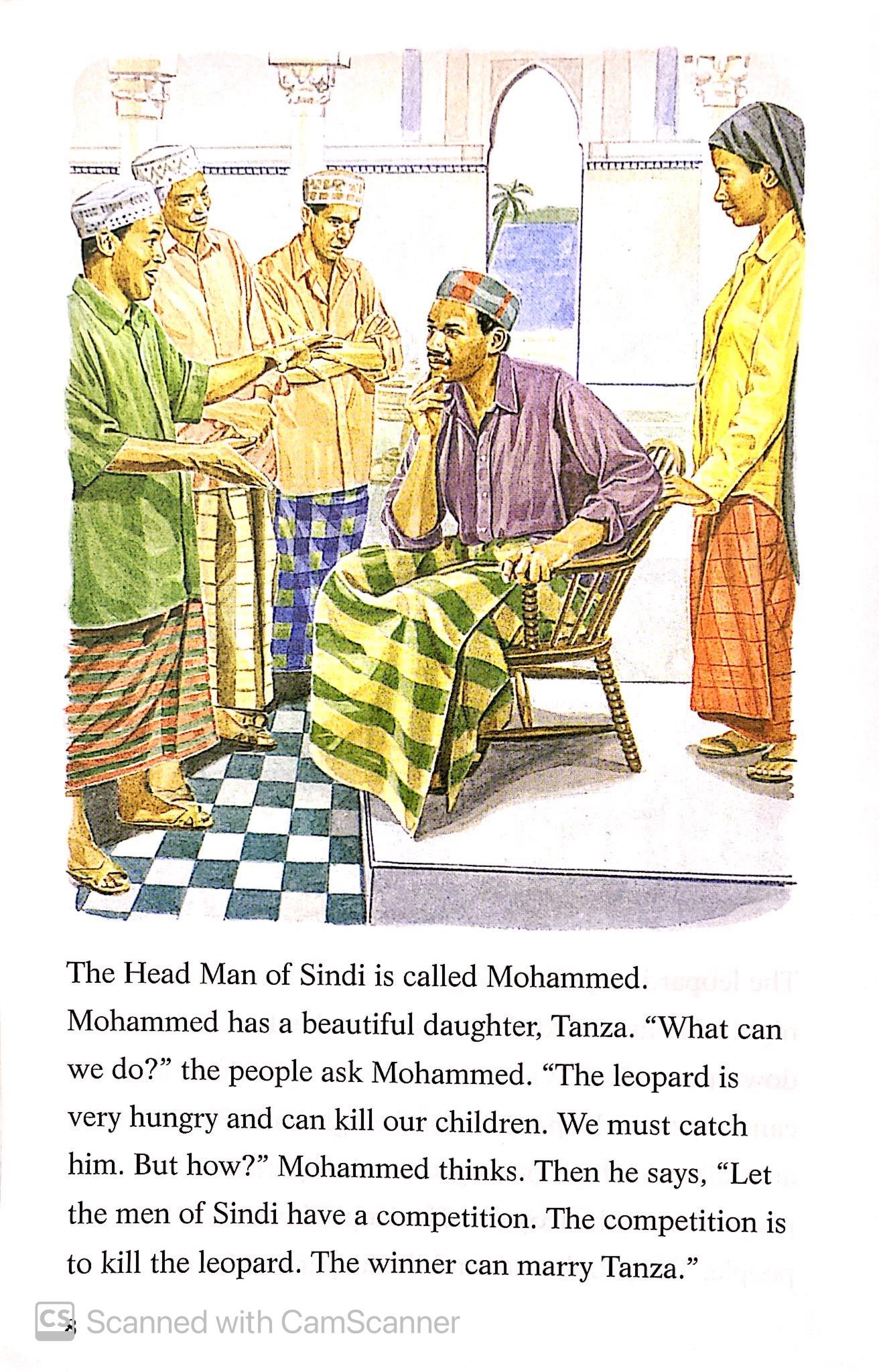 Original / British English One day a leopard swims across the sea to Sindi. He is hungry and he is looking for food. He runs into an old lighthouse. The people of Sindi do not