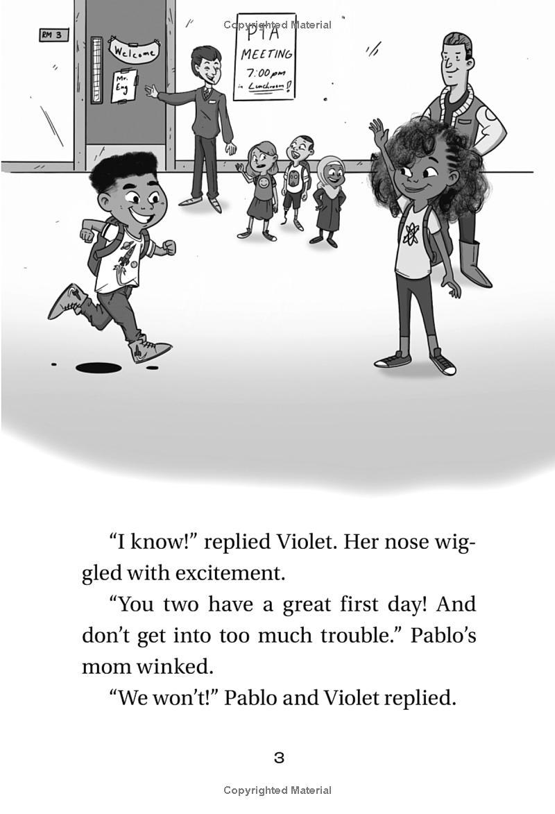 Violet and Pablo are best friends who love science! So when they discover a riddle that opens a magic portal in the Science Space at school, they can't wait to check it out! Along with their new classmate, Deepak, the friends discover a magical makerspace called the Maker Maze. It's a laboratory full of robots, 3D printers, an antigravity chamber, and more. Doors line the walls of the makerspace, with a new science adventure waiting behind each one.