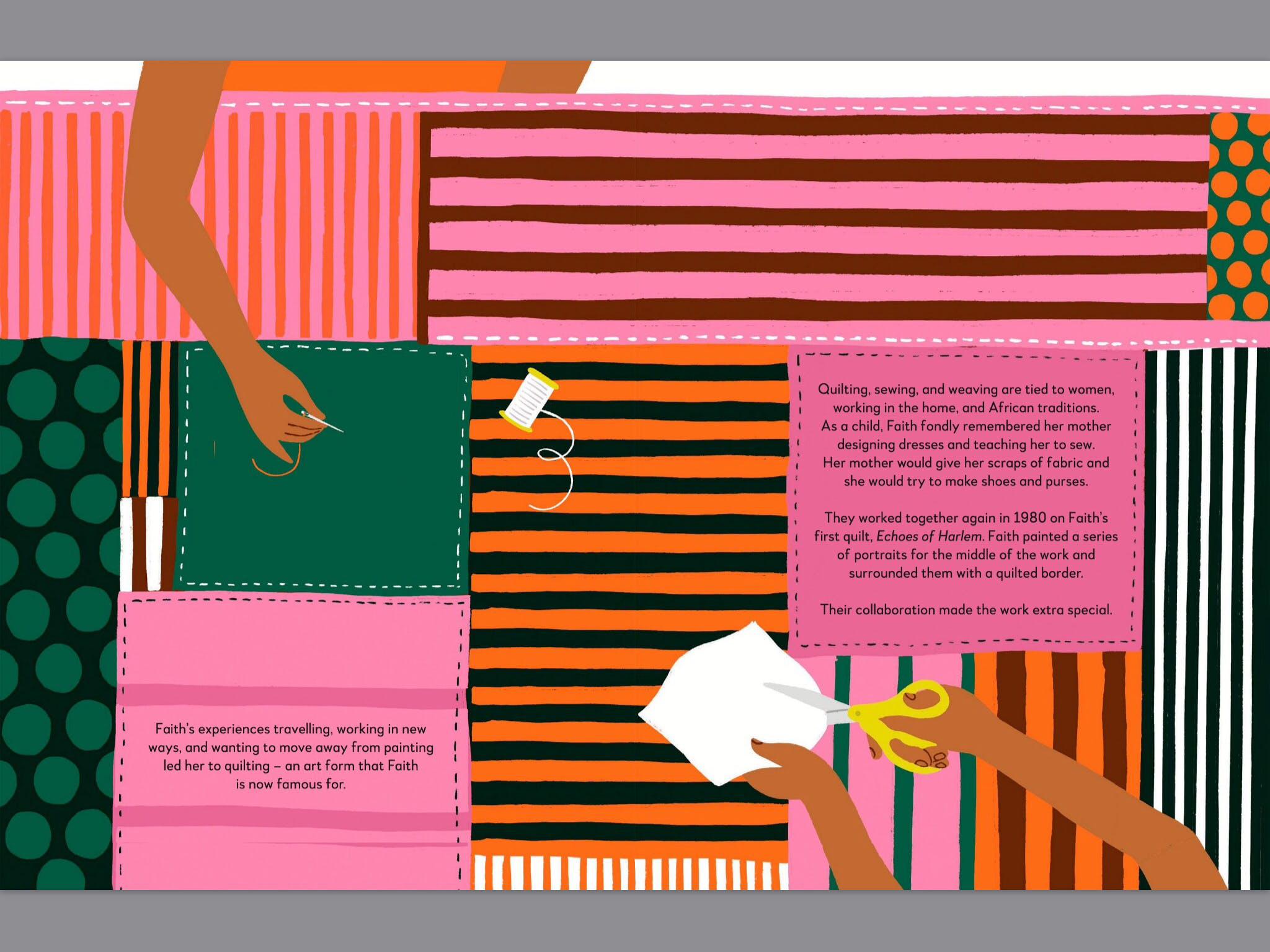 Have you ever wondered exactly what your favorite artists were looking at to make them draw, sculpt, or paint the way they did? In this charming illustrated series of books to keep and collect, created in full collaboration with the Metropolitan Museum of Art, you can see what they saw, and be inspired to create your own artworks, too. In What the Artist Saw: Faith Ringgold, meet inspiring American activist Faith Ringgold. Step into her life and learn what led her to mix different media and craft powerful stories into quilts. Travel with her from Harlem, New York, to Europe, Ghana, and Nigeria. Pick a cause that you care about and try combining it with fabric or sculpture to make your own artworks!
