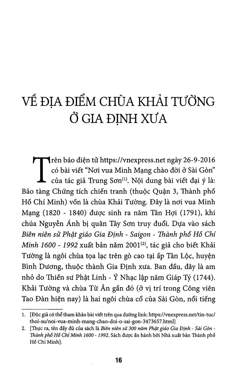 Bên cạnh các bài viết về các nhân vật lịch sử, một số vấn đề về địa danh các địa phương cũng đã được tác giả lý giải dựa trên nhiều nguồn tư liệu, để từ đó người đọc rút ra những nhận định của mình.