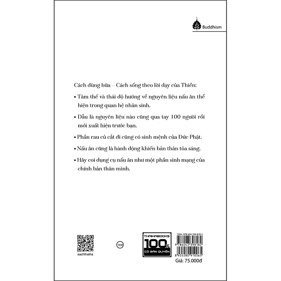 Nấu ăn và ăn. Những hoạt động đó ẩn chứa nhiều lời dạy, thực tiễn của Thiền. Hãy thử nhìn lại một chút quá trình nấu ăn, thử một lần nữa xem xét lại cách ăn. Những việc đó chính là cách chạm đến thế giới của Thiền tự nhiên nhất. Hơn thế, trong hành động ăn uống tồn tại “bản chất” của Thiền. Cuốn sách sẽ hướng dẫn bạn cách hướng dẫn Nấu ra sao, Ăn như thế nào theo phong cách thiền, bắt đầu mỗi ngày bằng năng lượng tươi sáng bằng bữa ăn đậm chất Thiền.