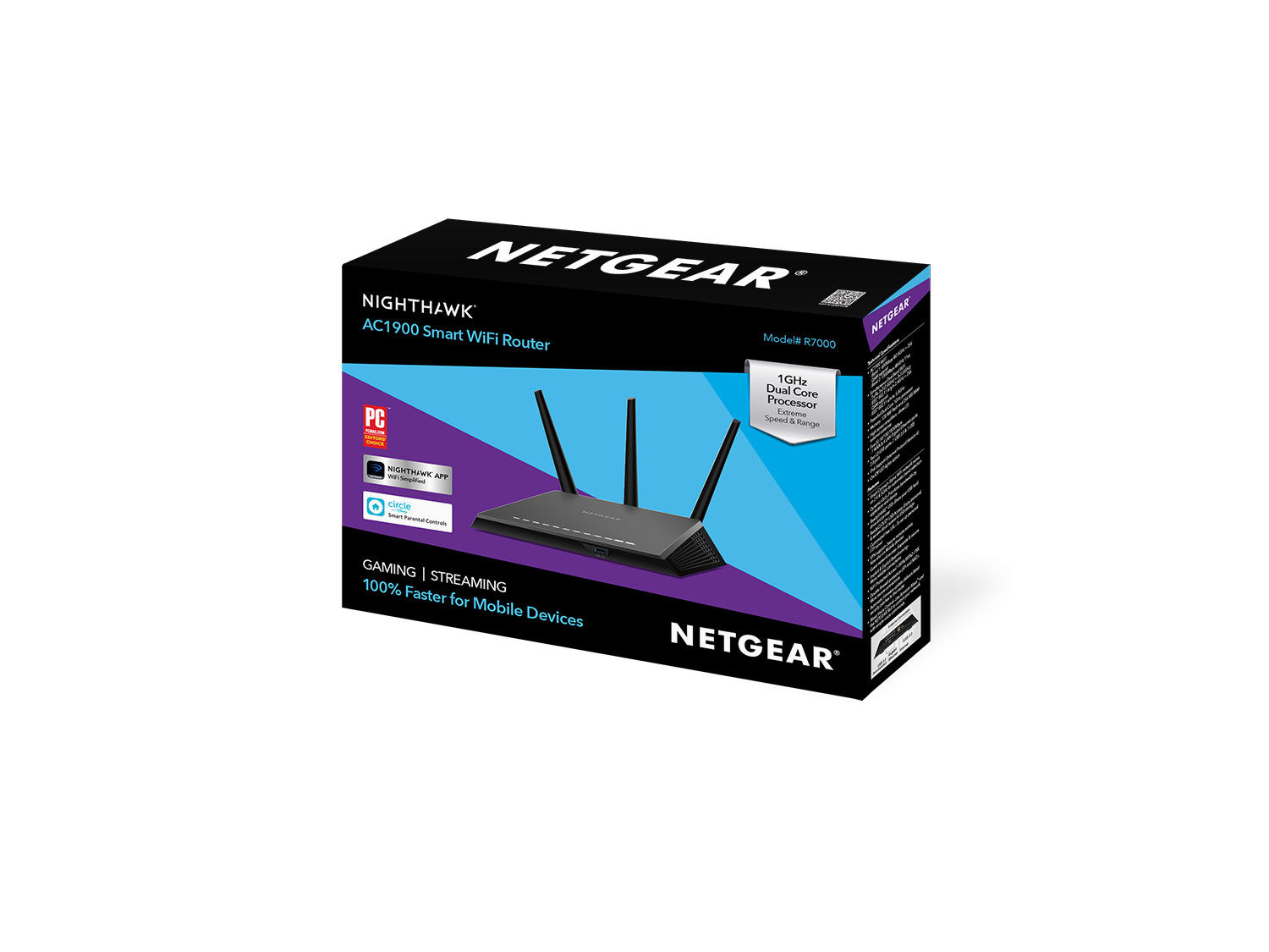 Bộ định tuyến WiFi thông minh Nighthawk R7000 AC1900 được cung cấp bởi bộ khuếch đại công suất cao và ăng-ten để mở rộng vùng phủ sóng WiFi của bạn. Tốc độ Wi-Fi kết hợp cực nhanh lên đến 600 + 1300Mbps và bộ xử lý lõi kép 1GHz cho phạm vi mở rộng.