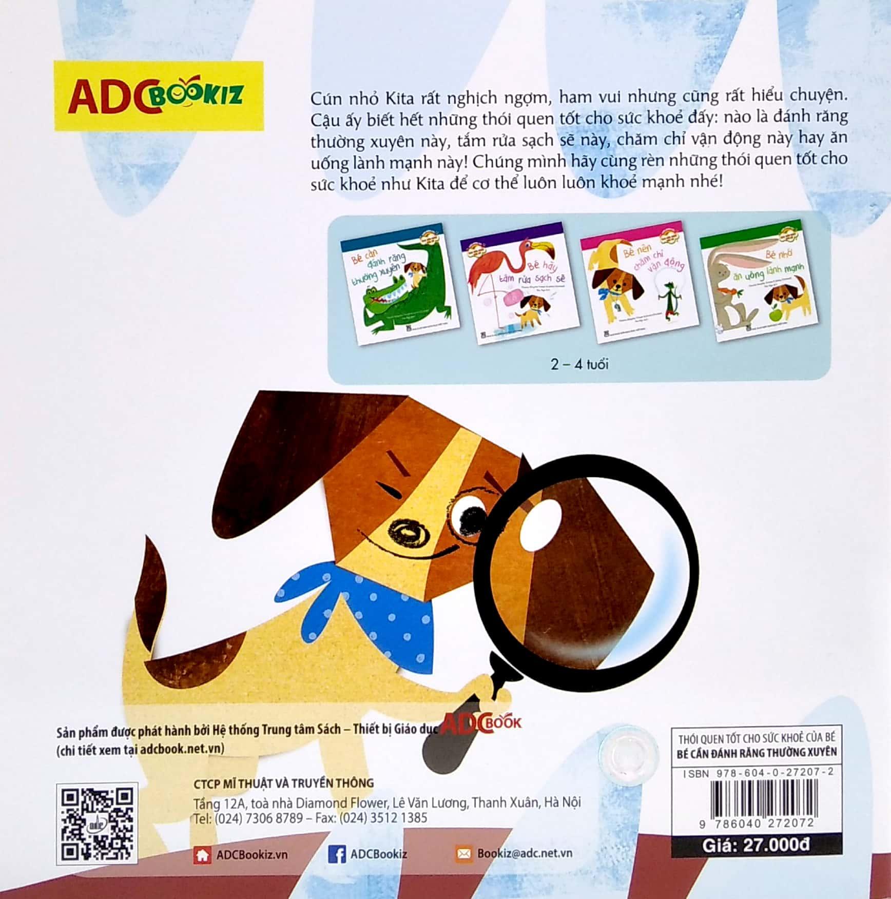 Bằng những câu chuyện vui nhộn của cún nhỏ Kita và các bạn, bộ sách Thói quen tốt cho sức khoẻ của bé, dành cho trẻ từ 2 – 4 tuổi, sẽ giúp trẻ hào hứng rèn luyện những thói quen tốt mỗi ngày: ăn uống lành mạnh, chăm chỉ vận động, tắm rửa sạch sẽ, đánh răng thường xuyên.