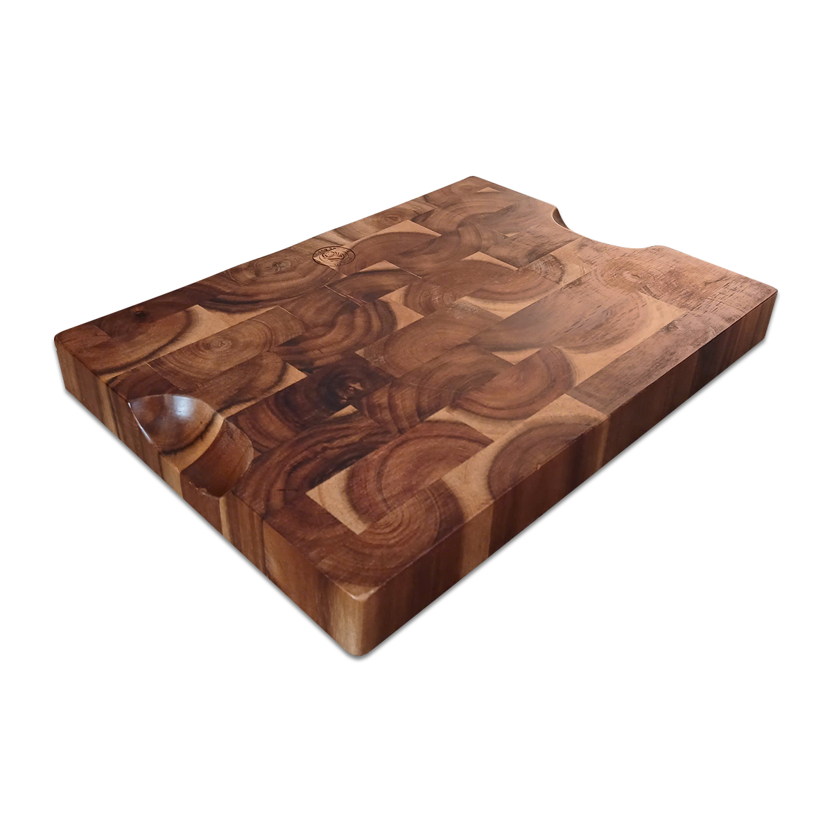 Cả 2 mặt sản phẩm đều được làm nhẵn mịn, hạn chế bụi bẩn và vi khuẩn còn sót lại sau khi vệ sinh. Vân gỗ độc đáo, màu gỗ tràm trầm ấm. Thiết kế thớ gỗ đan xen, theo phong cách Châu Âu, sang trọng và hút ánh nhìn, xứng đáng có trong gian bếp nhà bạn.Thớt có khoét lõm hai bên, giúp người dùng dễ dàng cầm, nhấc thớt nặng