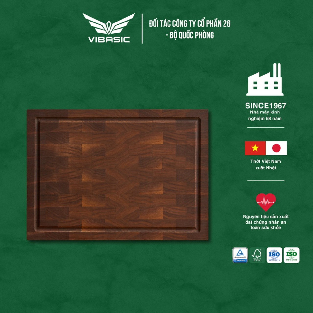 Thớt gỗ Teak Vibasic ghép dựng block kích thước 400x300x38mm, dùng để chặt I.Đặc điểm nổi bật - Được sản xuất tại nhà máy ra đời năm 1967- 56 năm kinh nghiệm - Đối tác