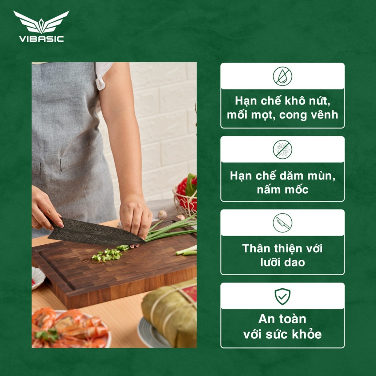 ✨Thớt gỗ óc chó Vibasic kích thước 35x25x2.7, dùng để cắt thái thực phẩm, kèm hộp quà tặng cao cấp - Hàng chính hãng Bộ Quốc Phòng