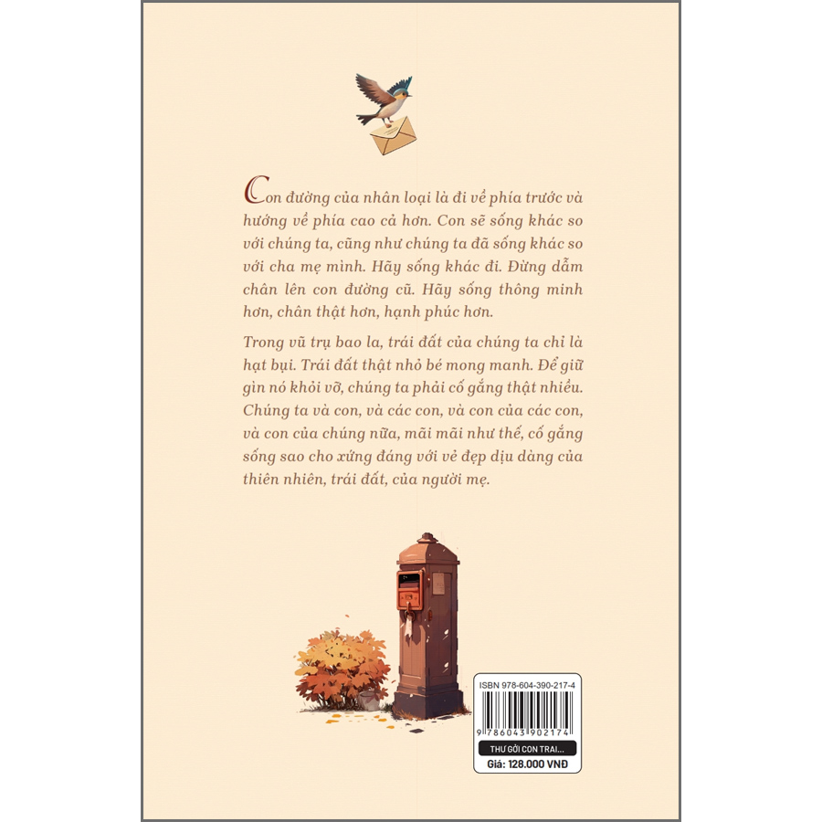 Gọi là “Thư gửi gởi con trai”, nhưng 80 lá thư trong tập sách là 80 lá thư mà ai cũng cần được đọc. Các bạn nhỏ đọc để cảm nhận được tình yêu thương vô bờ mà bố mẹ dành cho mình, để học cách “nghĩ khác đi” trước khi đòi mua một món đồ đắt tiền để khoác lên mình cho bằng bạn, bằng bè… Những người làm cha, làm mẹ đọc để thêm trân trọng “món quà của thượng đế” là những đứa con: “Bất cứ cha mẹ nào khi nghĩ đến con, không phải chỉ nghĩ đến lời cảm ơn của chúng dành cho mình, mà còn nghĩ đến lòng biết ơn của họ đối với con cái. Nhờ trẻ con mà chúng ta lớn lên, nhờ có chúng mà chúng ta được hạnh phúc làm người đi trước, che chở, chỉ đường. Nhờ có lời nhắc của con, hôm ấy ta về nhà sớm, và có một buổi tối cả nhà cười phá lên trước cái tivi vui nhộn, những câu hỏi hóc búa. Những cha mẹ đi làm việc thỉnh thoảng nên nhận được lời nhắc về nhà sớm như vậy, vì tuổi thơ chóng qua, khi bạn thu xếp được thì giờ thì bọn trẻ đã lớn, không cần chúng ta nữa”.