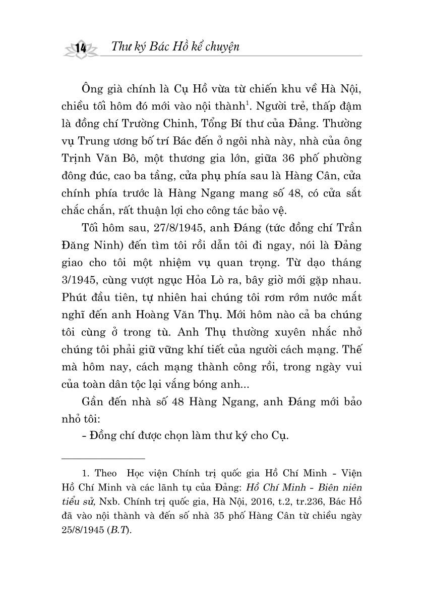 Nhân dịp kỷ niệm các sự kiện lớn của đất nước, Nhà xuất bản Chính trị quốc gia Sự thật trân trọng giới thiệu ấn bản lần thứ tư, có chỉnh sửa – như một lời tri ân sâu sắc tới người thư ký trung thành của Bác và là món quà tinh thần quý báu dành cho các thế hệ hôm nay và mai sau.