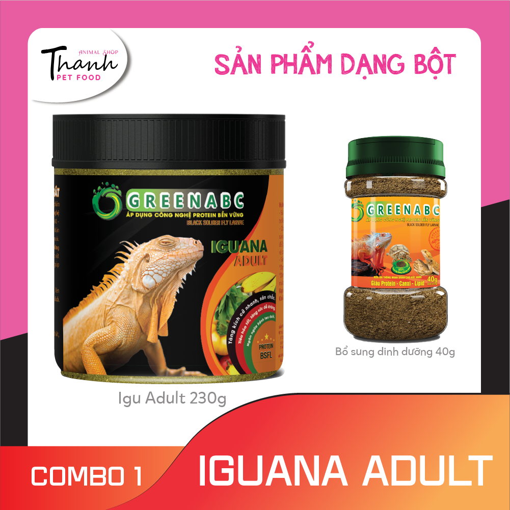 GREENABC - THỨC ĂN IGUANA TRƯỞNG THÀNH - Rồng Nam Mỹ trưởng thành từ 1m trở lên GREENABC là thức ăn cao cấp dành cho Iguana Trưởng Thành - Rồng Nam Mỹ Trưởng Thành. Đặc