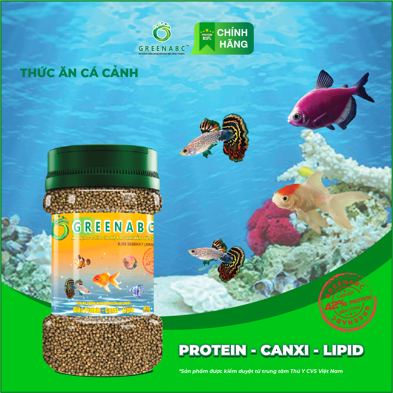 GREENABC là thức ăn bổ sung dinh dưỡng dành cho các loại CÁ CẢNH: cá 7 Màu, cá Cánh Buồm, cá Neon, cá Molly, cá Ba Đuôi, Đặc biệt sản phẩm GREENABC được sản xuất theo phương pháp Áp dụng công nghệ PROTEIN bền vững rất giàu PROTEIN – CANXI – LIPID có trong BSFL, đã được Mỹ (AAFCO) và EU chấp nhận đưa vào công thức cho ngành sản xuất thức ăn cho vật nuôi.