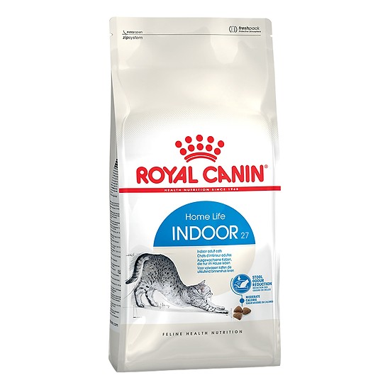 Thức ăn cho mèo ROYAL CANIN Indoor hỗ trợ sức khoẻ của mèo bằng cách cung cấp dinh dưỡng chính xác dựa trên sự hiểu biết đúng đắn về các nhu cầu cụ thể với hơn 40 năm nghiên cứu. Mèo sống trong nhà có lối sống ít vận động, nhu cầu năng lượng thấp hơn và nguy cơ béo phì cao hơn nên thức ăn cần hỗ trợ được những vấn đề sau: Giảm mùi hôi cho mèo Hỗ trợ trọng lượng khỏe mạnh Giúp điều chỉnh búi lông Hỗ trợ hệ tiêu hóa 100% dinh dưỡng cân bằng 100% đảm bảo an toàn ROYAL CANIN INDOOR dành cho mèo trưởng thành sống trong nhà từ 1 đến 7 tuổi. LỢI ÍCH Giảm mùi hôi khó chịu Chế độ ăn không thích hợp là nguyên nhân chủ yếu gây ra mùi hôi khó chịu trong phân. Thức ăn cho mèo ROYAL CANIN Indoor với công thức tiêu hóa tối ưu giúp giảm đáng kể mùi hôi trong phân mèo. Mức năng lượng vừa phải Chế độ ăn kiêng với mức Calo vừa phải, thích ứng với cường độ hoạt động thấp của mèo nhà, giúp giữ cân nặng lý tưởng cho mèo. Điều chỉnh búi lông mèo Giúp kích thích chuyển động của dạ dày, loại bỏ các sợi lông mèo nuốt vào bụng nhờ sự kết hợp của các chất xơ lên men và không lên men .