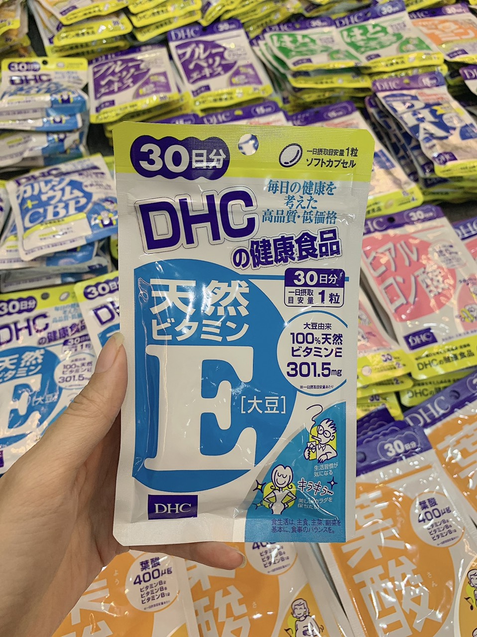 - Viên uống vitamin E DHC có chứa 301.5 mg d-a tocopherol tự nhiên, là dạng vitamin E có hiệu quả tối ưu nhất và được khuyến nghị dùng mỗi ngày.