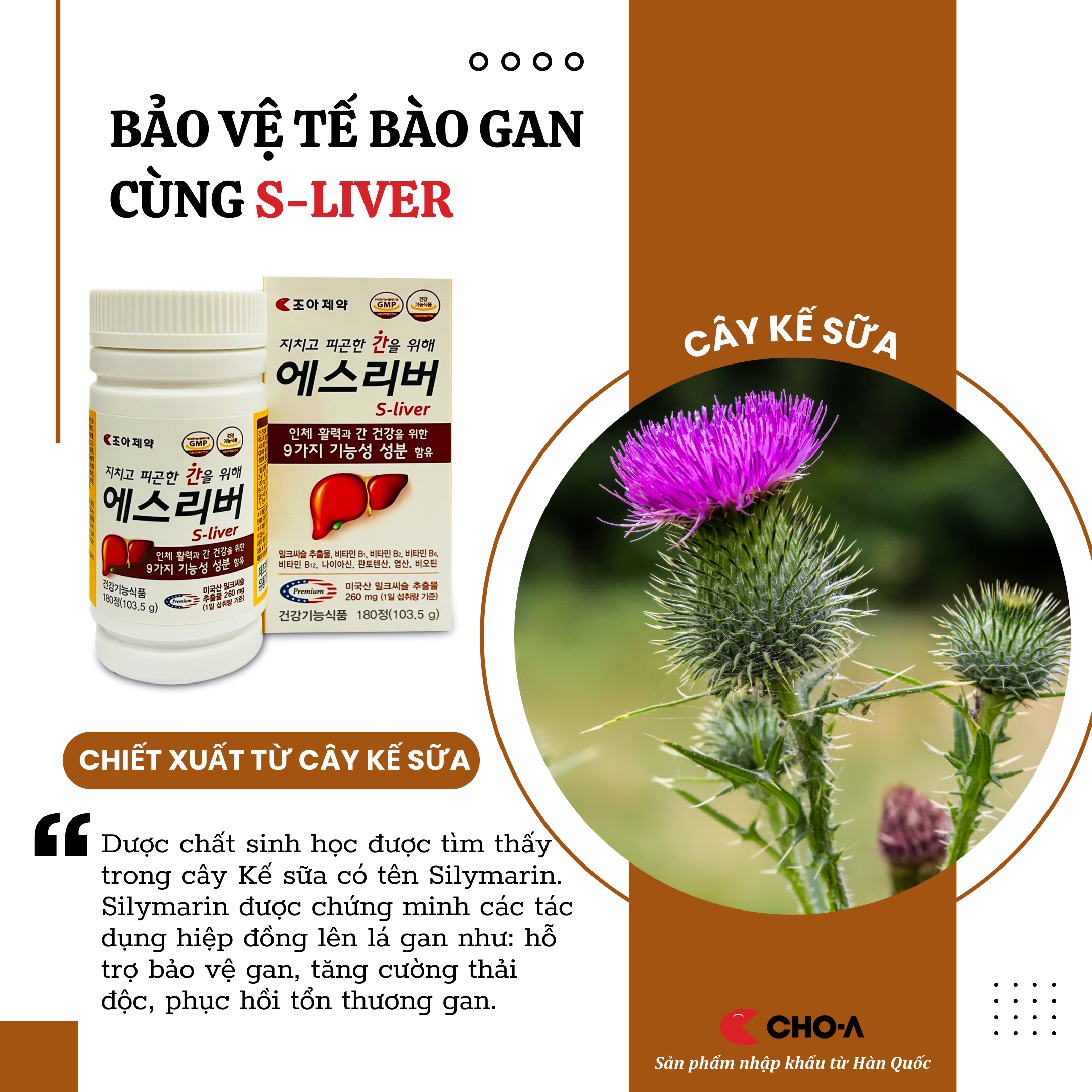 Mua tại TiktokTHỰC PHẨM BẢO VỆ SỨC KHỎE GAN S-LIVER TĂNG CƯỜNG CHỨC NĂNG GAN (1 HỘP x 180 VIÊN) S-LIVER là sản phẩm dành cho gan với chiết xuất từ cây kế sữa, hỗn hợp các loại vitamin,... được sản xuất theo quy trình chất lượng chuẩn của Hàn Quốc trên dây chuyền công nghệ hiện đại. Công Dụng:
