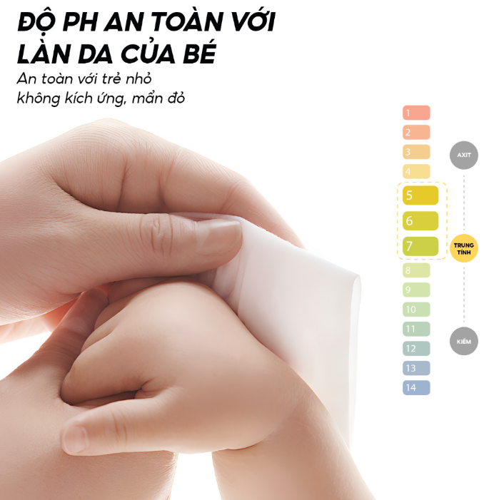- Khăn ướt có độ pH cân bằng với làn da mỏng manh của bé. An toàn cho mẹ và bé, sử dụng được cho trẻ sơ sinh, không kích ứng, mẩn đỏ