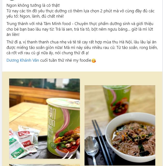 - Không cần đậy nắp, chờ 2 phút, trộn đều và thưởng thức Bảo quản: Bảo quản nơi khô ráo và tránh ánh nắng mặt trời Ngày sản xuất: Xem trên bao bì Hạn sử dụng: 9 tháng kể từ ngày sản xuất Sản phẩm làm hoàn toàn tự nhiên, không hoá chất